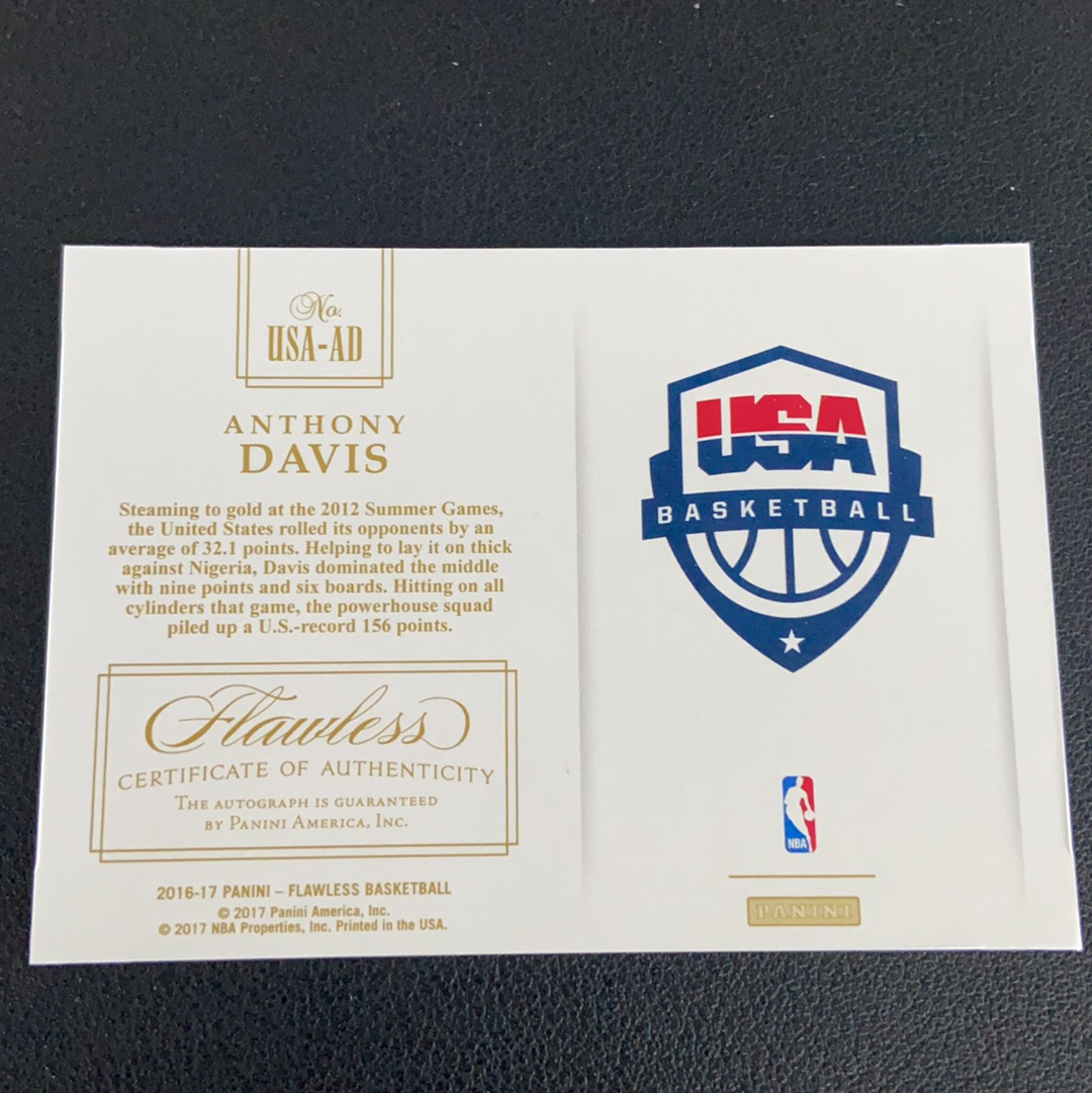 2016-17 Panini Flawless Anthony Davis 手提 美国梦之队 安东尼 戴维斯 10/15编 浓眉 卡签 签字 专收必备