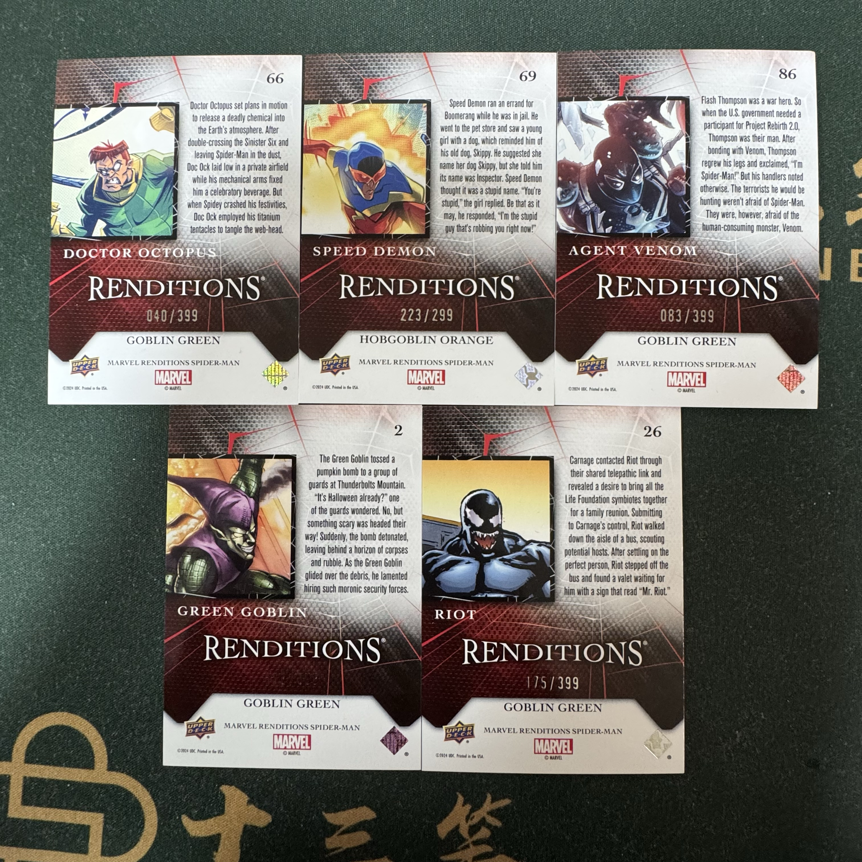 【十三笔】2024 Upper Deck Marvel (MCU) 漫威蜘蛛侠演绎 Renditions 章鱼博士 毒液特工 速魔 暴乱 绿魔 399编 299编 折射 打包5张 卡品如图