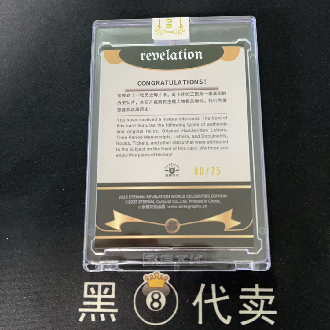 52【黑8代卖】2025 ETERNAL REVELATION 永痕文化 启示录系列 约翰 加尔文 蓝折 相关物件 历史切片 75编 折射 名人收藏卡 原封砖【ress】