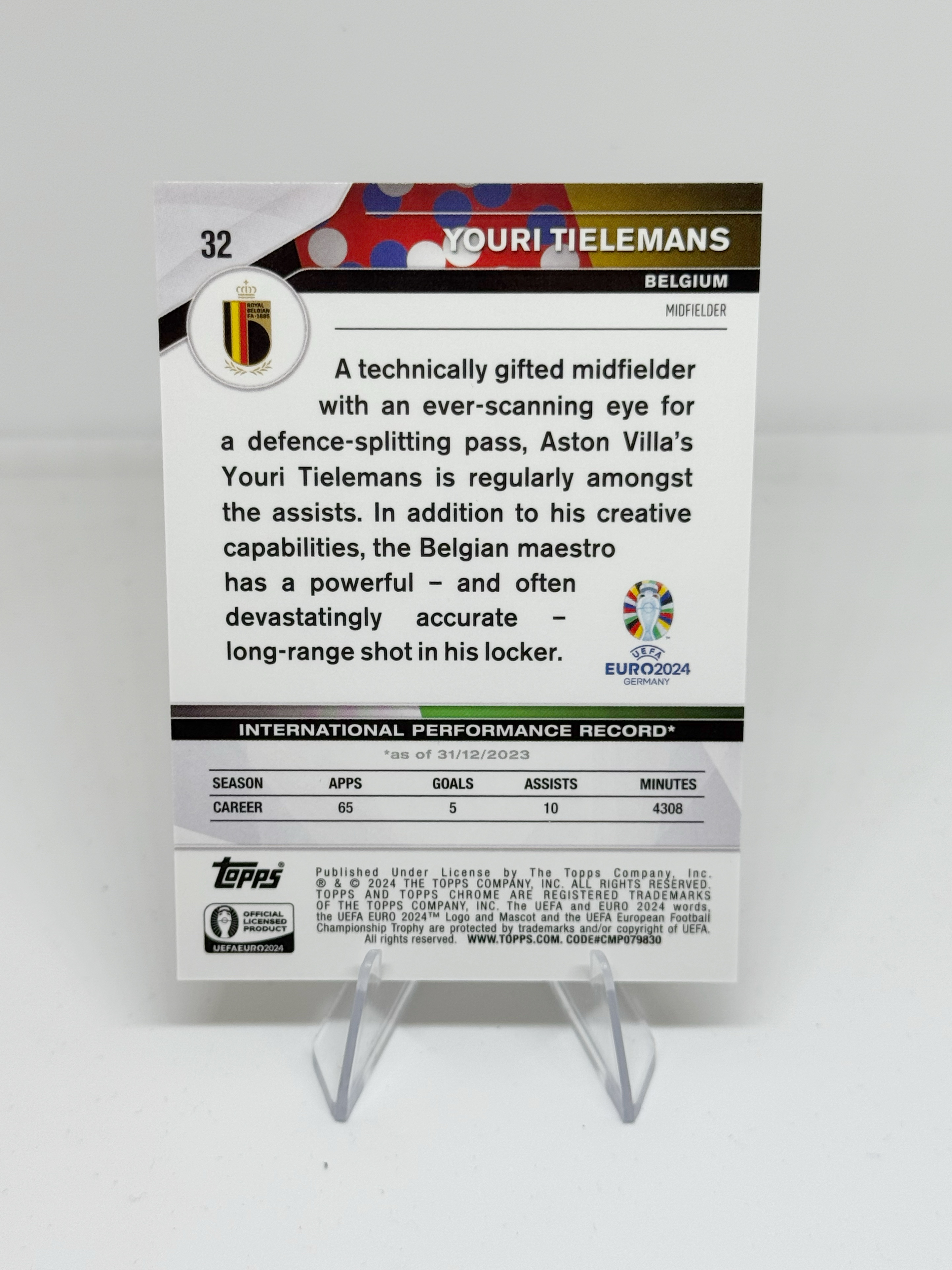 2024 Topps Chrome Youri Tielemans 欧洲杯 chrome TC正系列 比利时 蒂勒曼斯 紫熔岩折 /175编 欧洲杯 元年 凑套必备 卡品如图