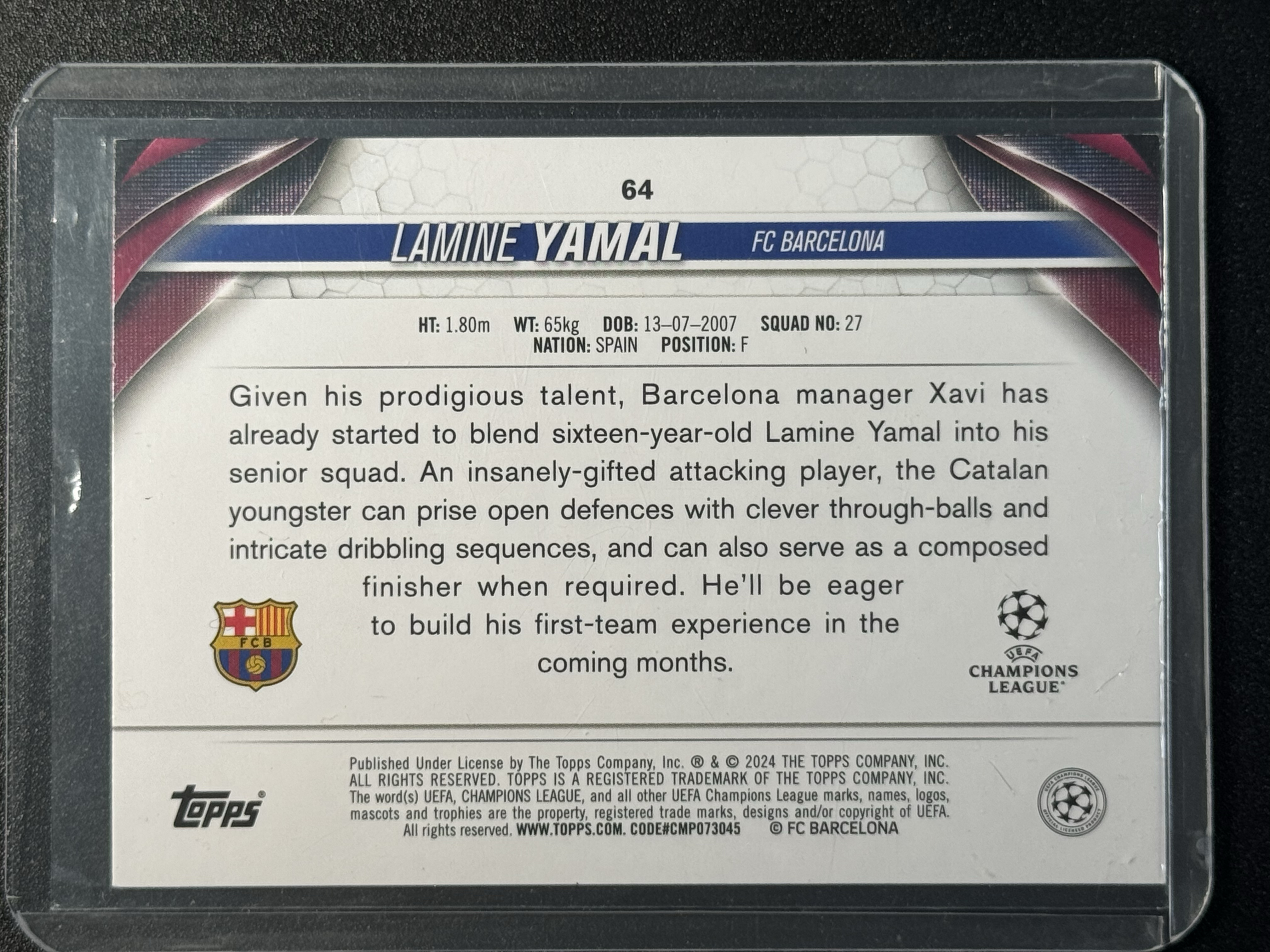 【读秒绝杀】2024 Topps UCC Lamine Yamal SP RC #64 欧冠 龙年碧玉 巴萨 巴塞罗那 西班牙 拉明 亚马尔 青玉折 折射 新秀RC 特卡 投资首选 #王总