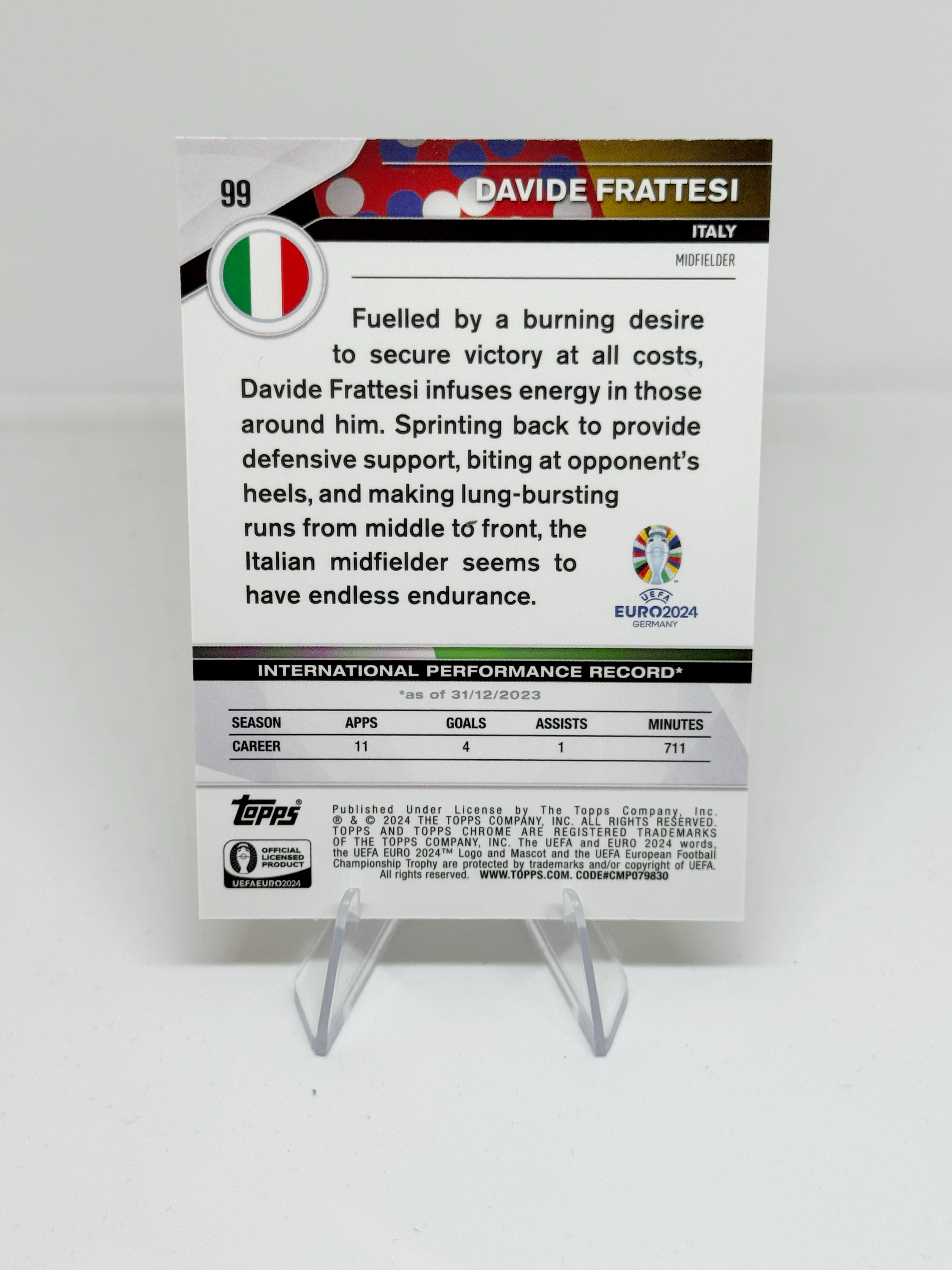 2024 Topps Chrome Davide Frattesi TC 正系列 欧冠 蓝宝石 达维德 弗拉泰西 欧洲杯 元年 国际米兰 /50编 金碎冰折