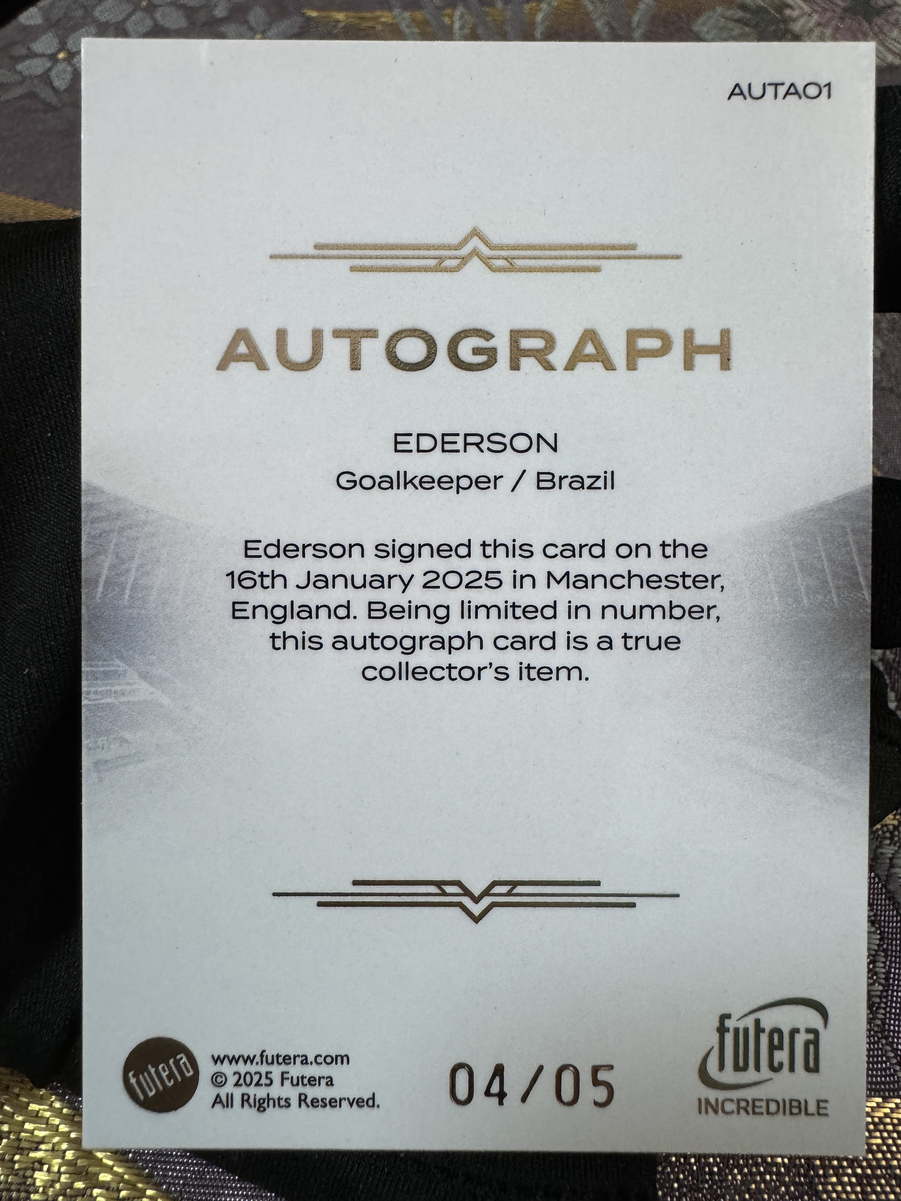2025 Futera Futera Unique Ederson 福特拉 巴西 曼城 伟业缔造者 超级巨星 埃德森 顶级门将 投资大热 大比例 金框 卡签 04/05编 签字 完美墨迹 实卡精美