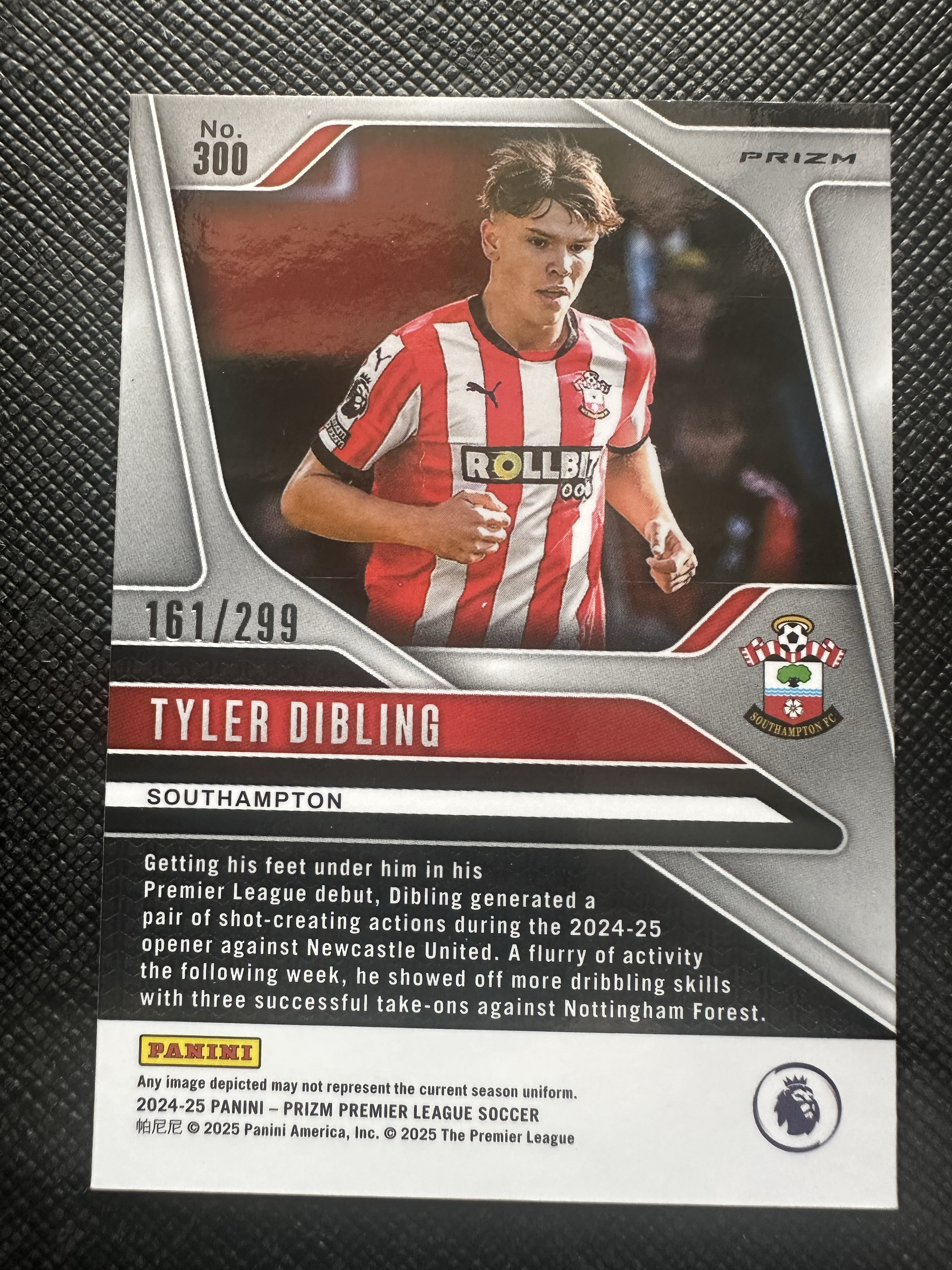 2024-25 Panini Prizm Tyler Dibling RC England 迪布林 南安普顿 埃弗顿 英格兰 新秀赛季 投资收藏必备 卡品如图 不保卡品 介意勿拍 299编 161