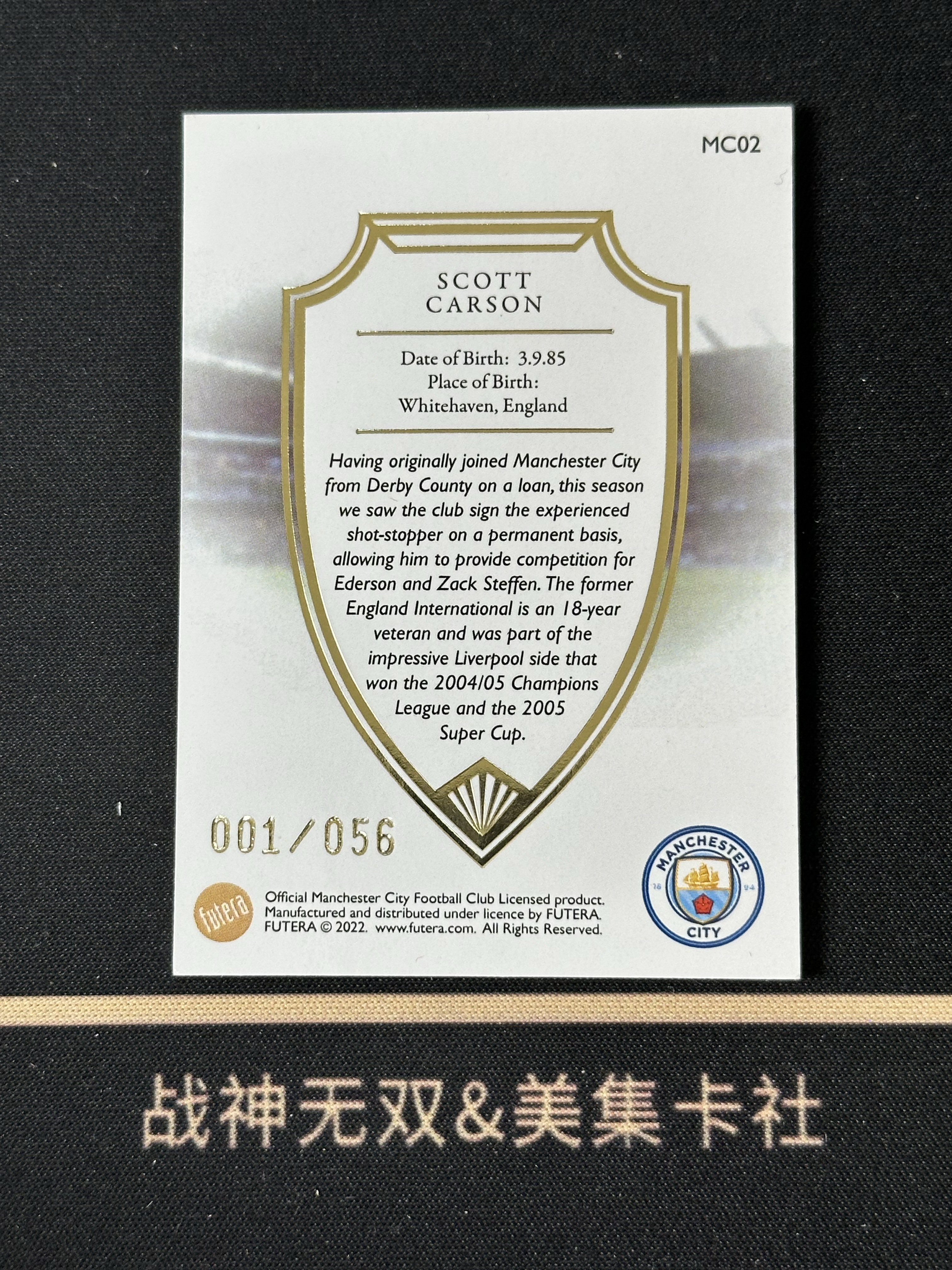 2022 Futera Unique 福特拉 曼城队盒 Scott Carson 斯科特·卡森 曼城 1/56编 首编 战神无双 (magit)