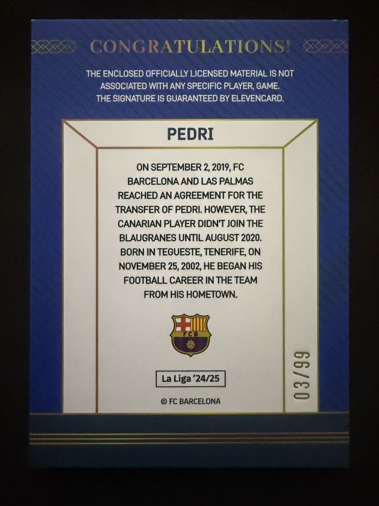 2024-25 Eleven Barcelona Pedri 【大锦拍卖】巴萨队盒 佩德里 佩刀 03/99编 球衣切割 大窗物料 签字 卡品如图(世界)
