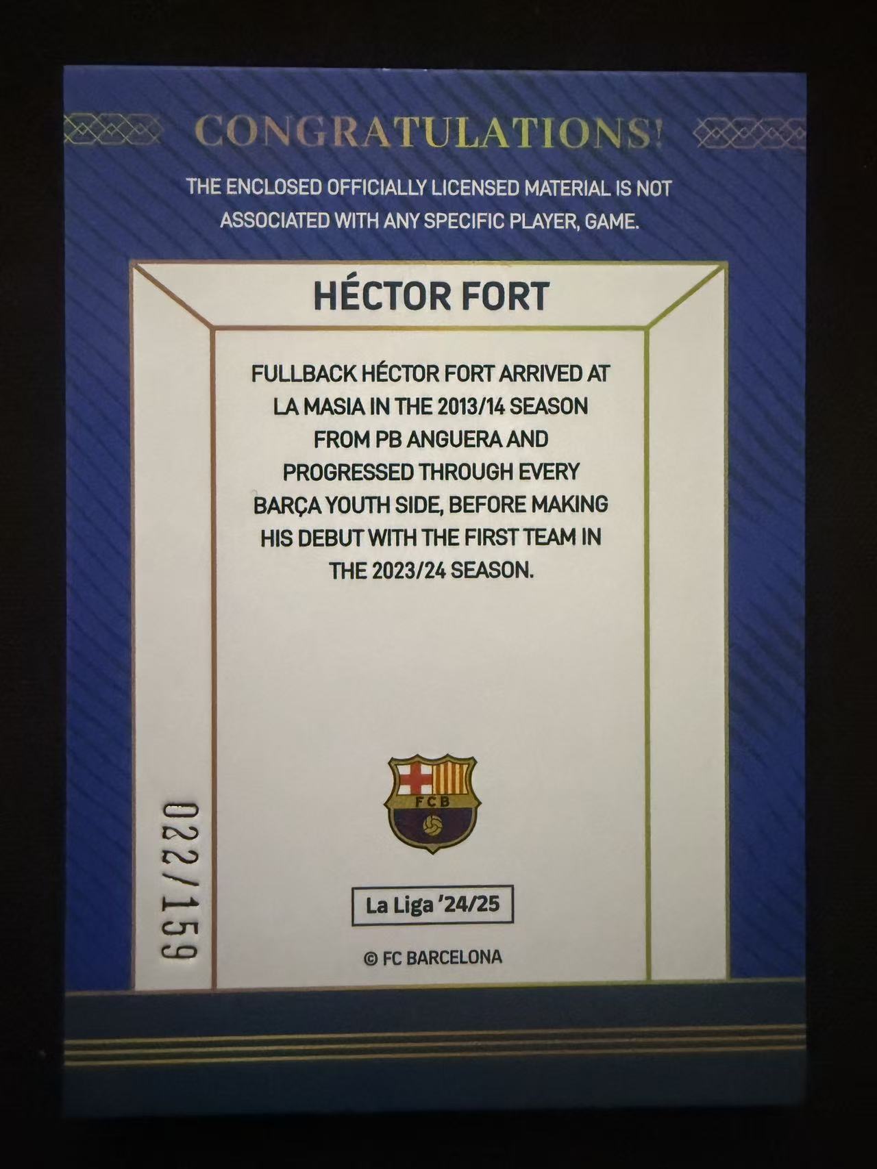 2024-25 Eleven Barcelona hector fort RC 【大锦拍卖】巴萨队盒 巴塞罗那 埃克托 福特 022/159编 新秀 RC 球衣切割 大窗物料 卡品如图(世界)