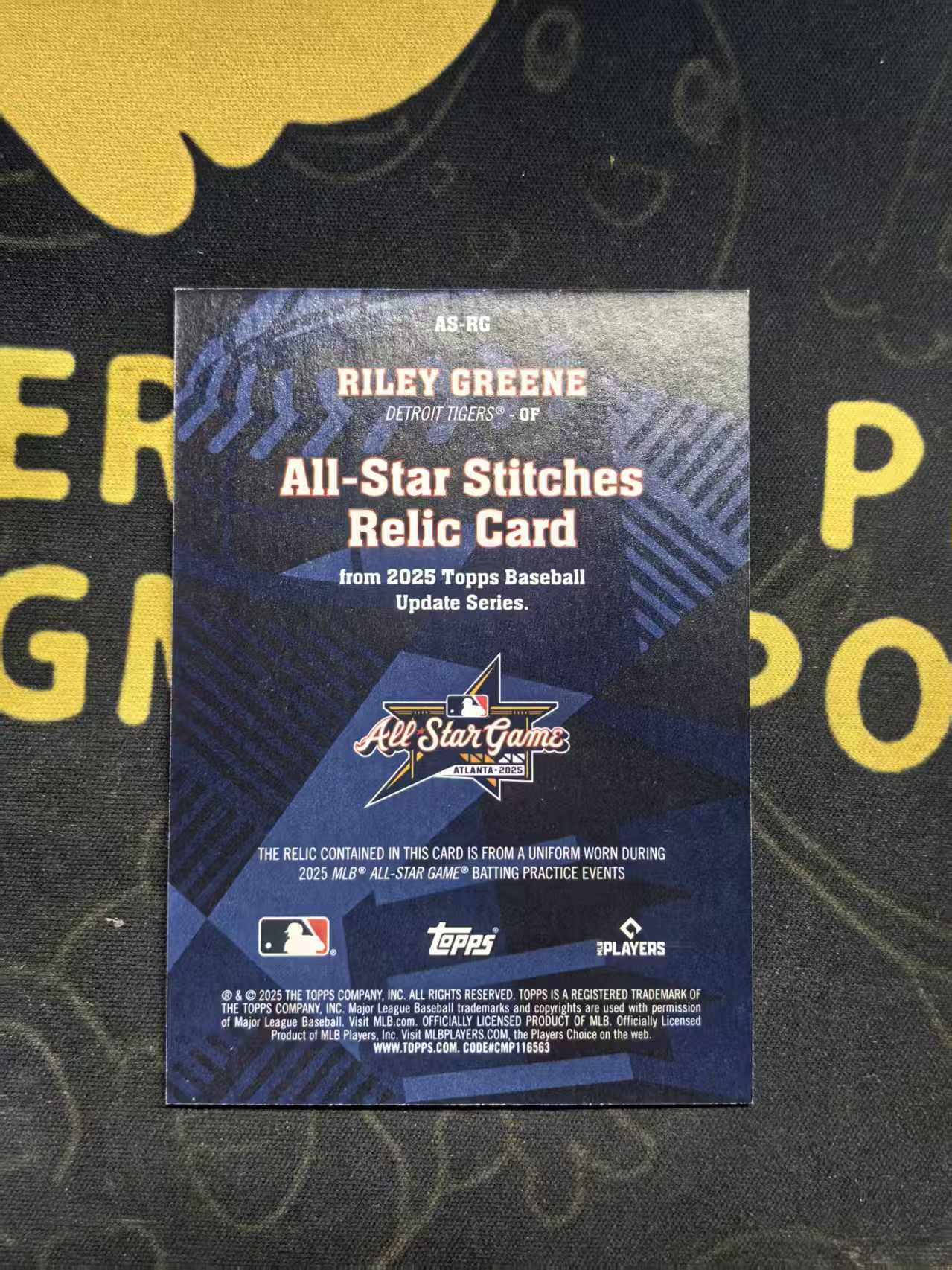 2025 Topps Update Riley Greene 瑞莉 格林 全明星球衣 物料  底特律老虎队 外野手 收藏必备