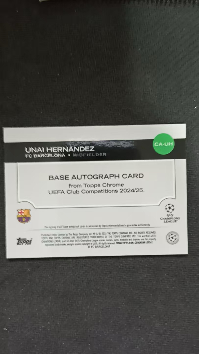 2025 Topps Chrome Unai Hernandez 乌奈 埃尔南德斯 埃尔南德兹 巴萨 巴塞罗那 欧冠tc 紫折 RC 新秀 签字 75编 hx