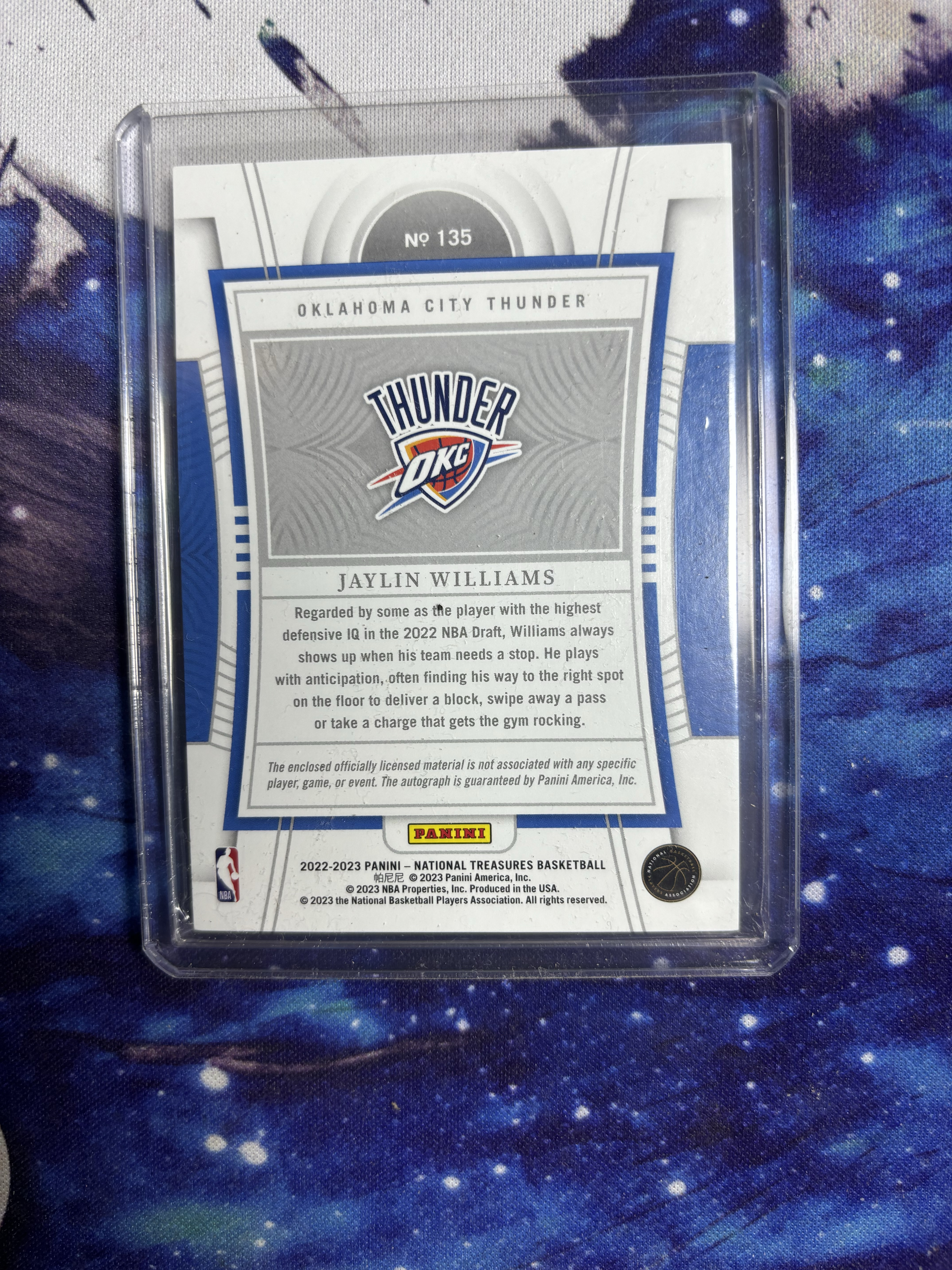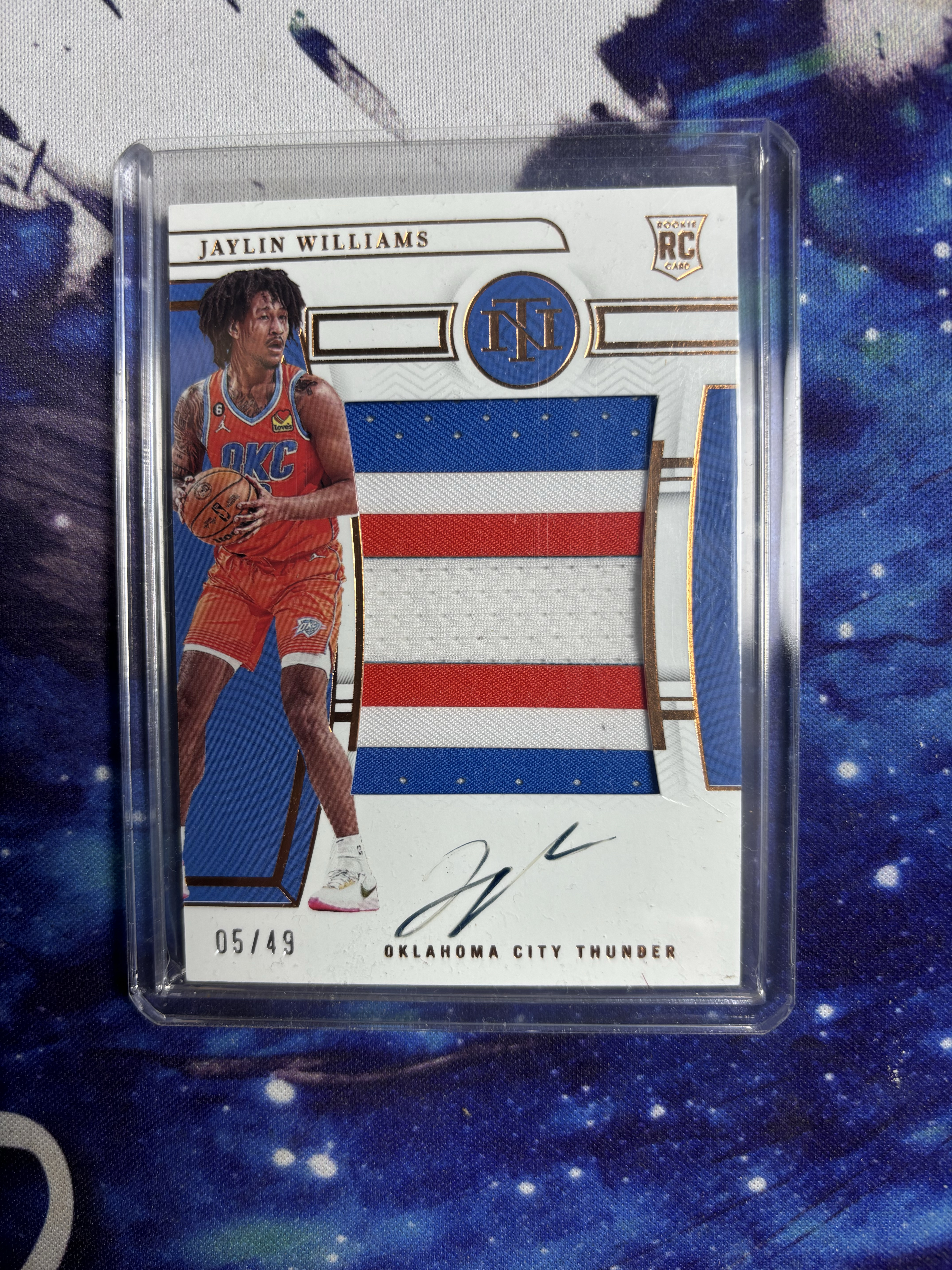 2022-23 Panini National Treasures Jaylin Williams RC 国宝 杰林 威廉姆斯 新秀 49编 大窗三色物料 rpa 卡签 雷霆 收藏投资必备 卡品如图