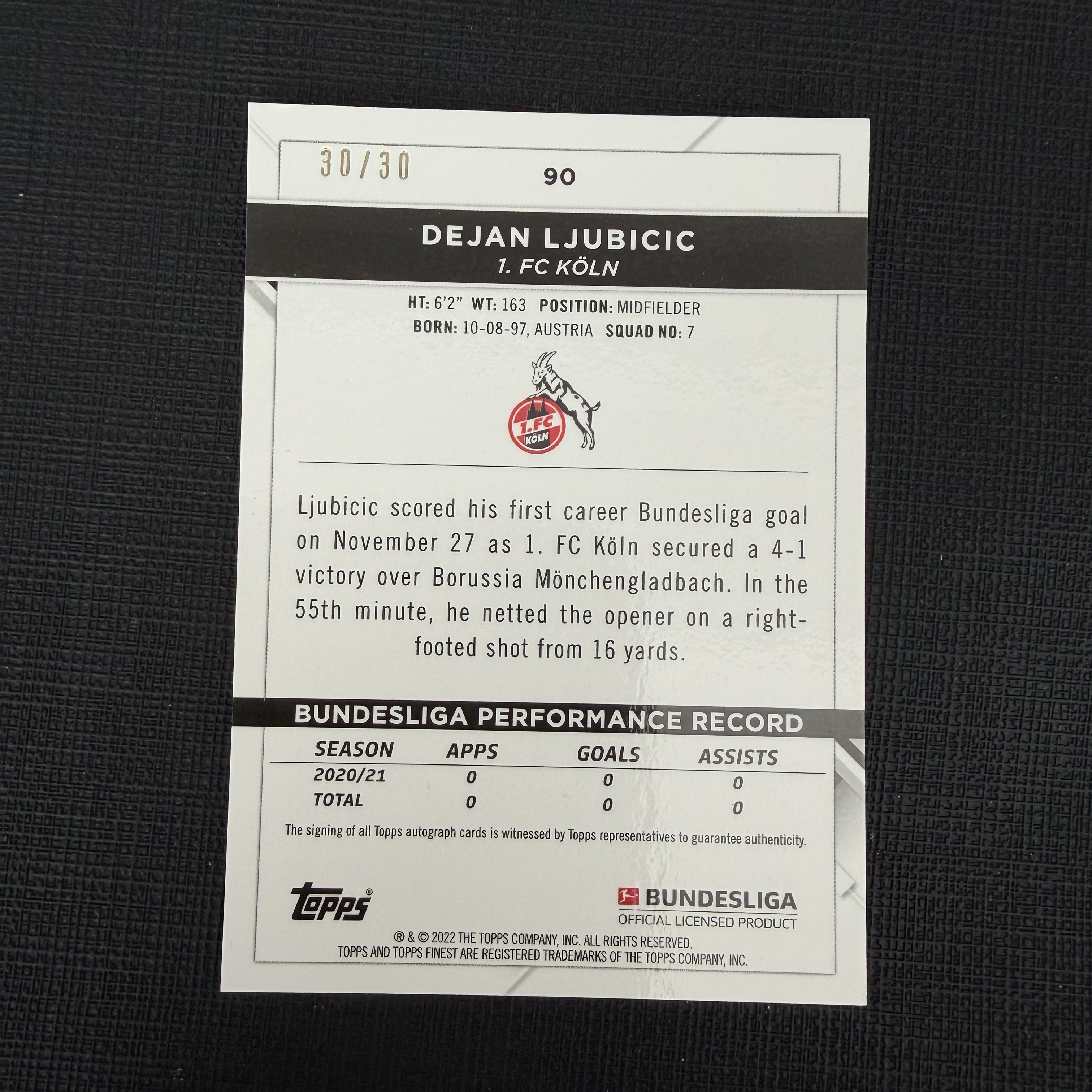 2022 Topps Finest Bundesliga Dejan Ljubicic RC 德扬 柳比契奇 德甲 银折 新秀 签字 科隆 30/30吧 尾编 绿波纹折 【默认微瑕 不发到付】卡zz
