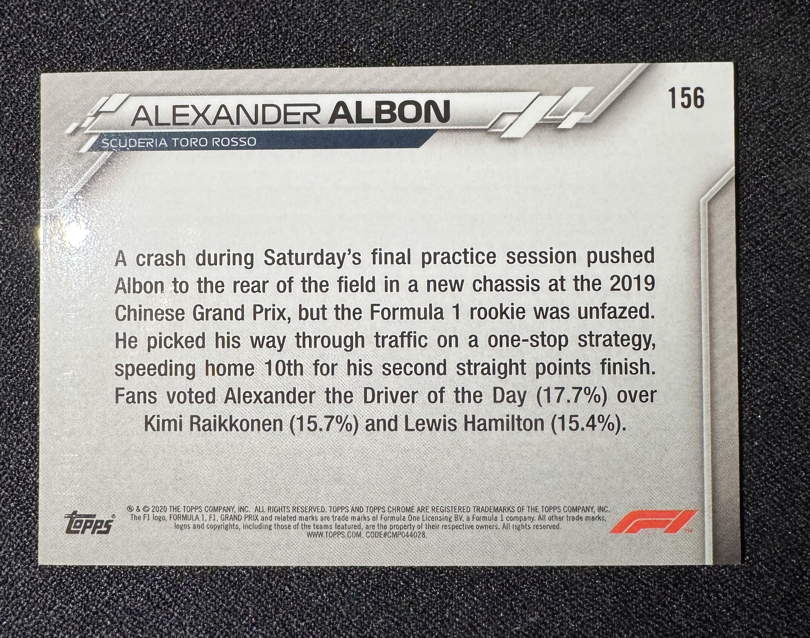 2020 Topps Chrome Alexander Albon RC F1 阿尔本 二本 新秀 2019年中国大奖赛最佳车手选图 小红牛车队 收藏凑套必备