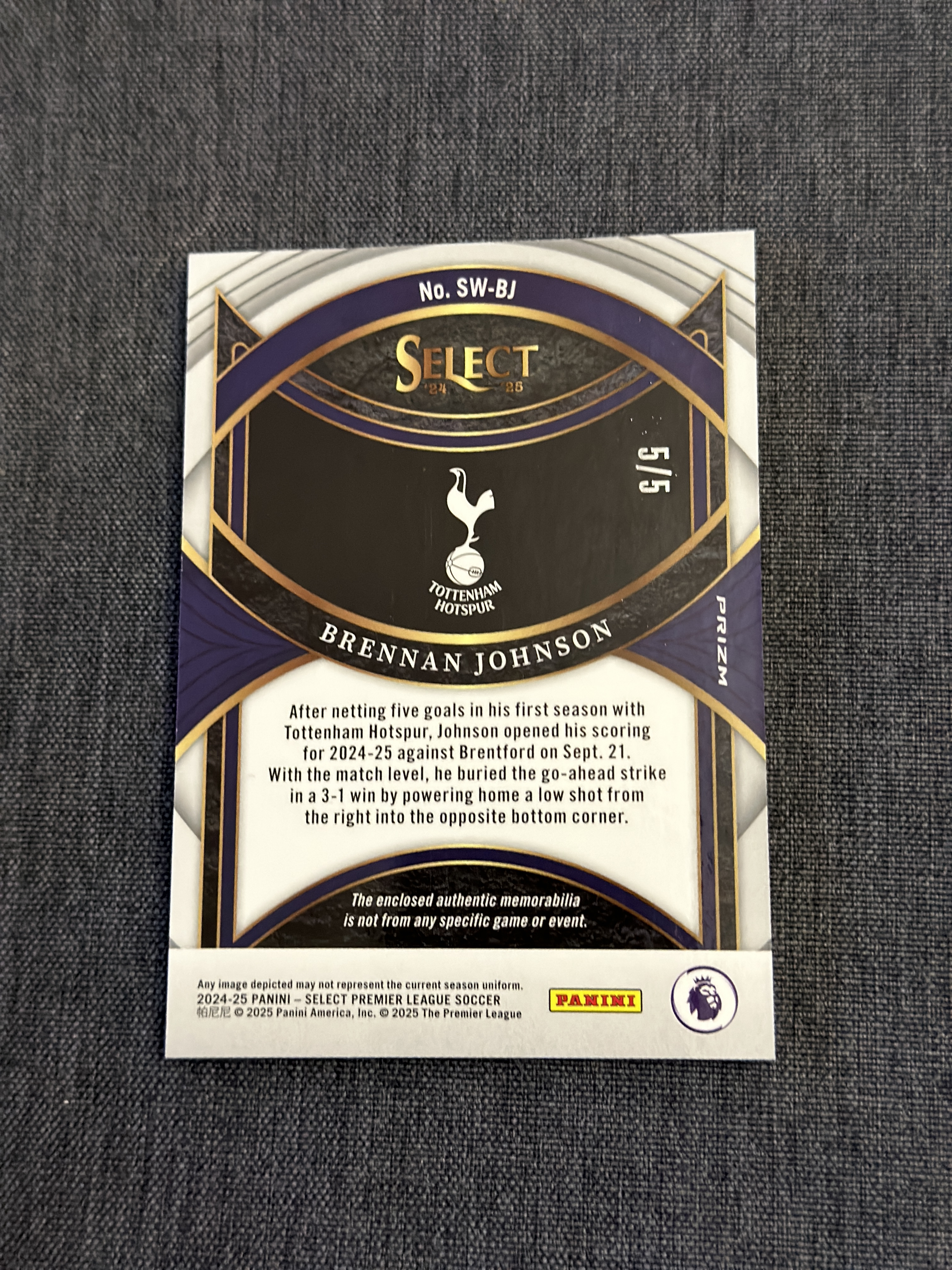 2024-25 Panini Select Brennan Johnson 英超 布伦南 约翰逊 5/5编 尾编 绿折 绿平行 Logo Patch 暴力切割 切到队徽 球衣物料 热刺 威尔士【爱彼】