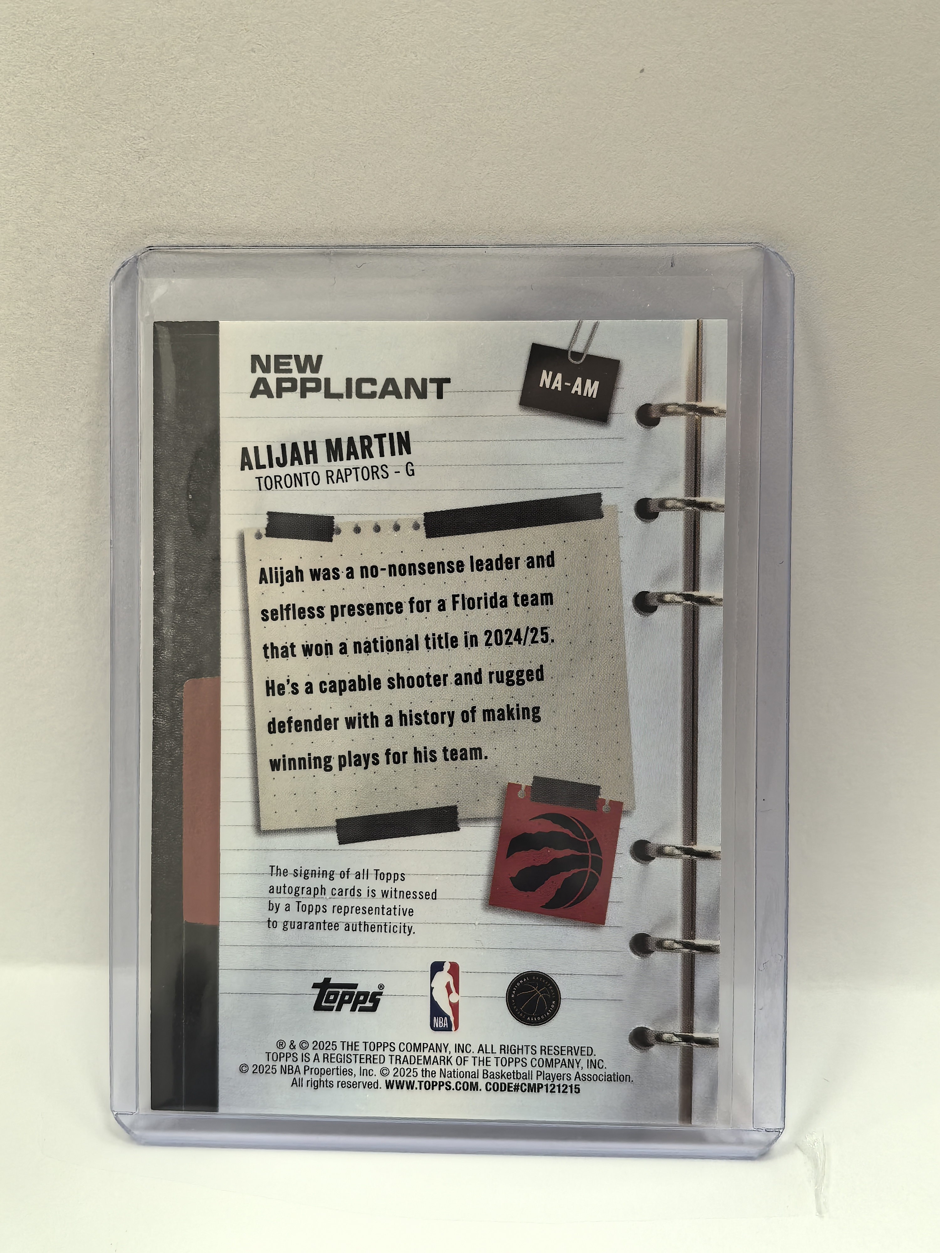 2025 Topps topps Alijah Martin 猛龙 阿莱贾 马丁 新秀 rc 签字 专收必备 卡品如图
