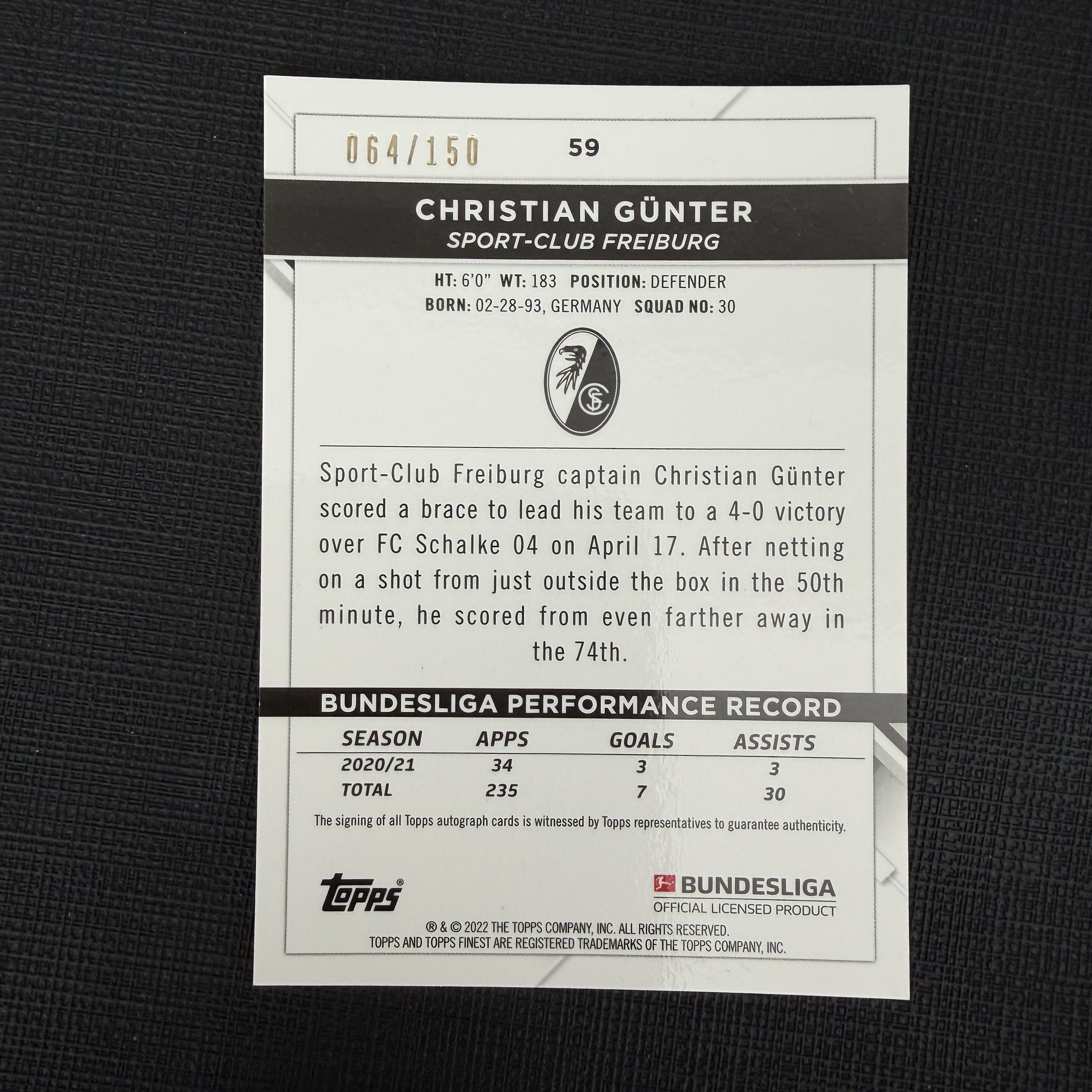 2022 Topps Finest Christian Gunter 克里斯蒂安 京特 签字 银折 弗莱堡 德甲 /150编 【默认微瑕一日一快递 不累计 不发到付】卡zz