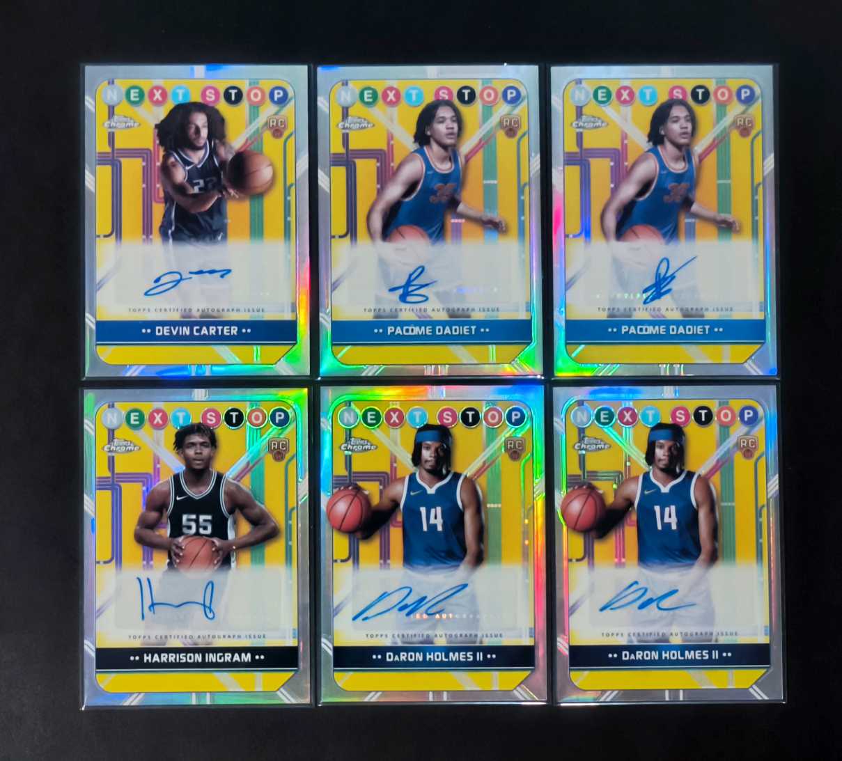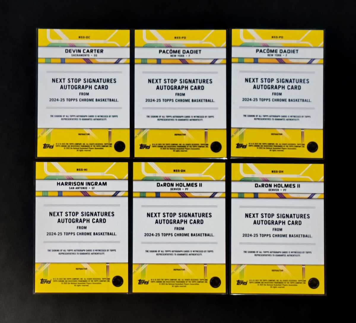 2025 Topps Chrome Devin Carter 新秀RC 国王 德文-卡特 掘金 达龙-霍姆斯二世 马刺 哈里森-英格拉姆 尼克斯 帕科姆-达迪耶 银折 签字 贴签 6张lot 打包