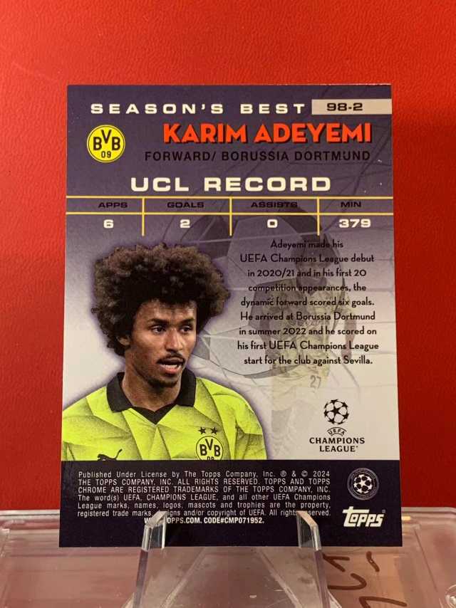 (老末精品代拍) 2024 Topps chrome Karim Adeyemi 多特蒙德 卡里姆 阿德耶米 欧冠 Shooting Stars 流星特卡 银折 顺丰空运 免费代拍 不保卡品E03