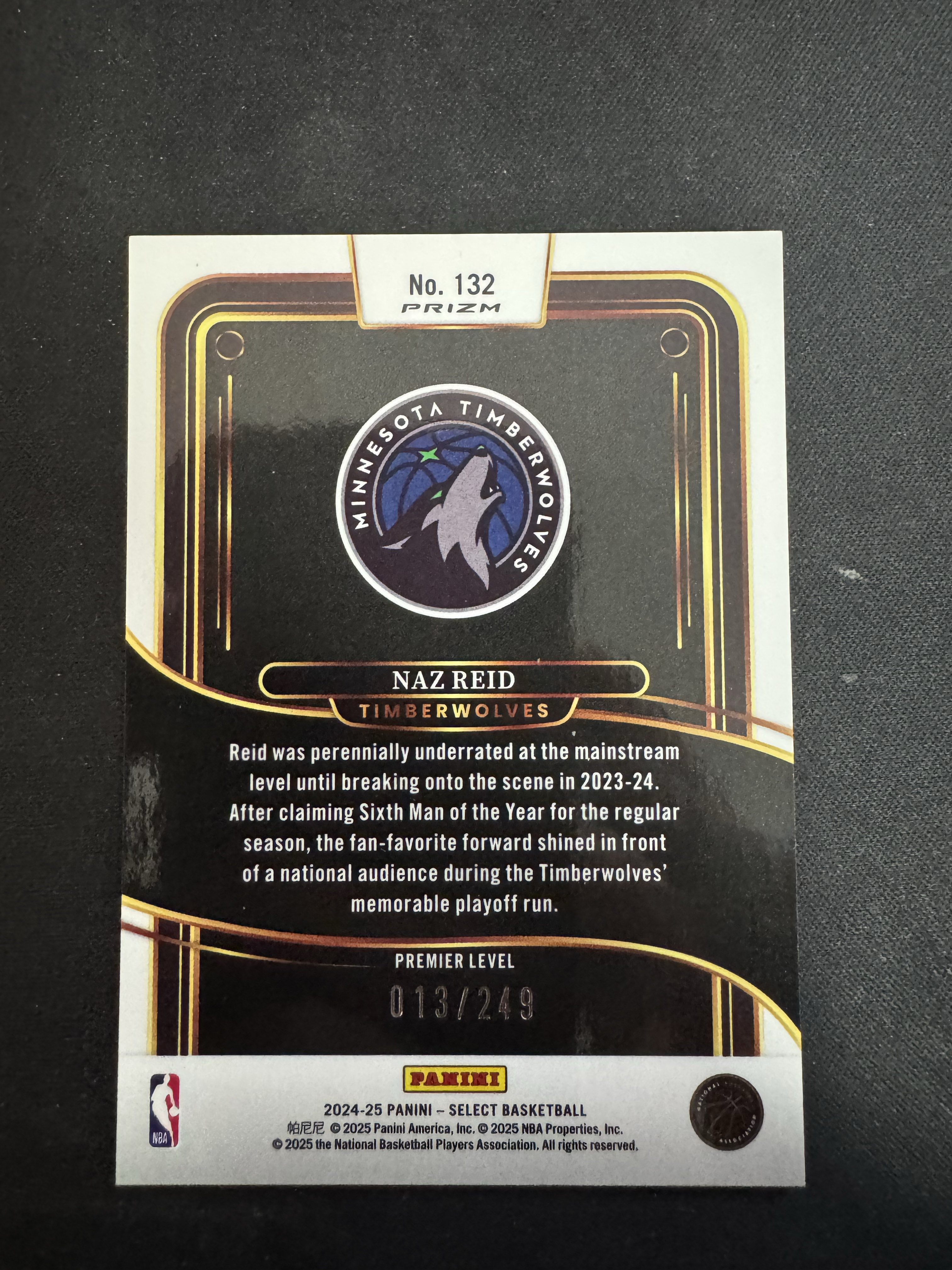 2024-25 Panini Select Naz Reid 【农夫】帕尼尼 SE 森林狼 纳兹 里德 红折 圆圈折 13/249编 低编 折射 卡品如图《唐11.18