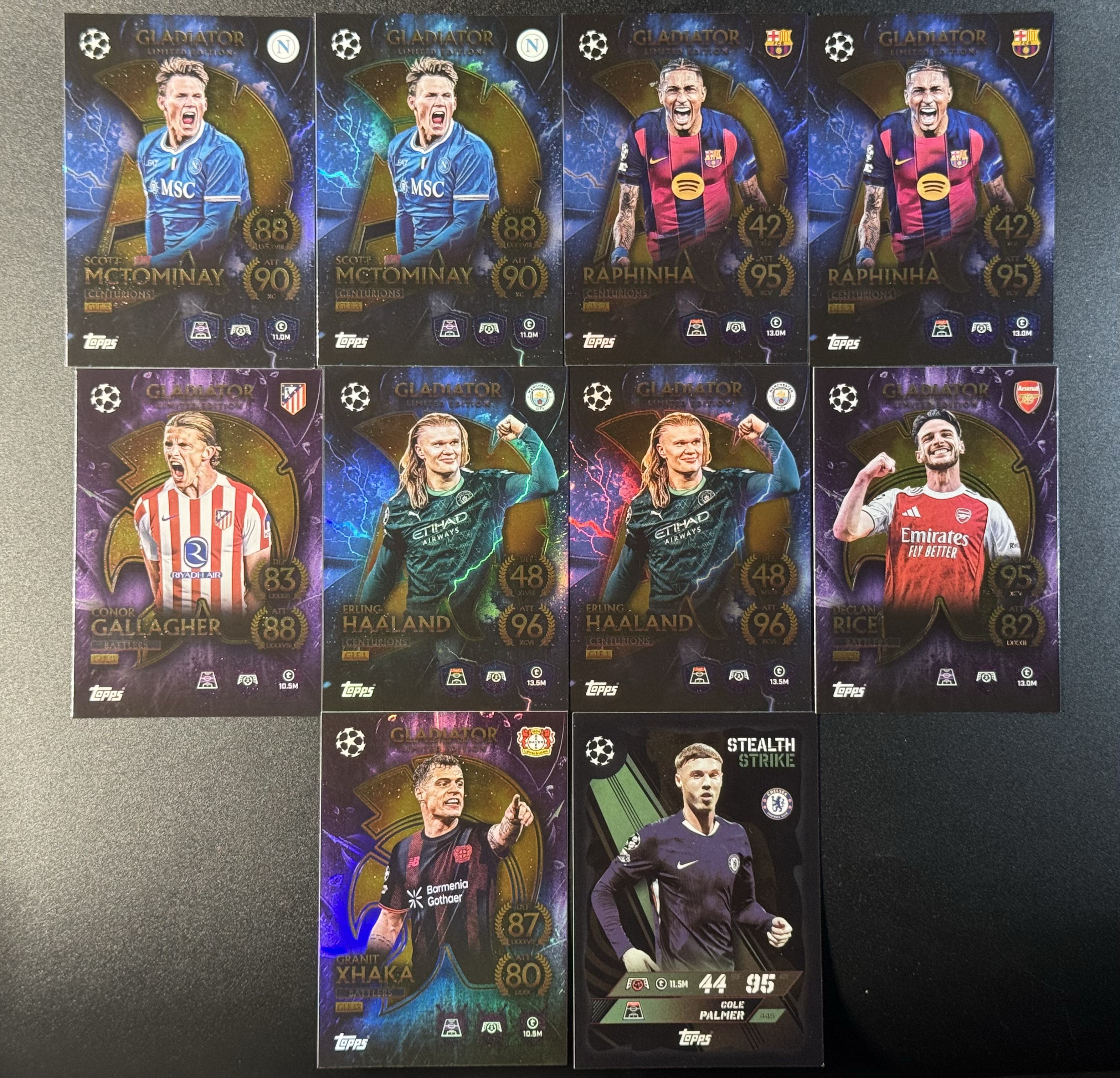 2025-26 Topps 欧战Match Attax游戏版 大铁盒独占 Gladiator角斗士 折射特卡 哈兰德 拉菲尼亚 赖斯 扎卡 帕尔默 Haaland Rice 麦克托米奈 李总