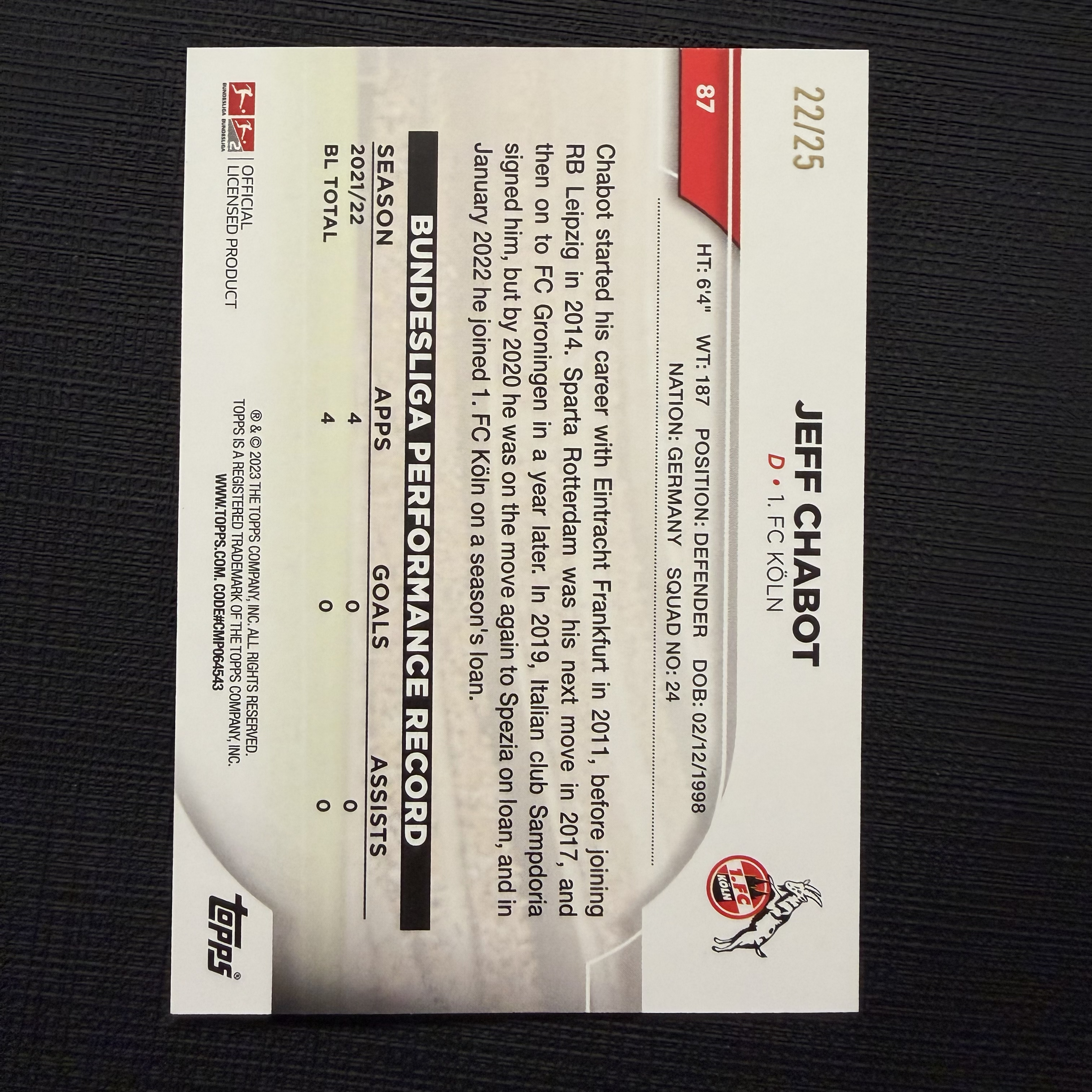 2022 topps 德甲 碧玉CHABOT  沙博特 科隆 25编 橙碧玉折 【默认微瑕一日一快递 不累计 不发到付】卡zz