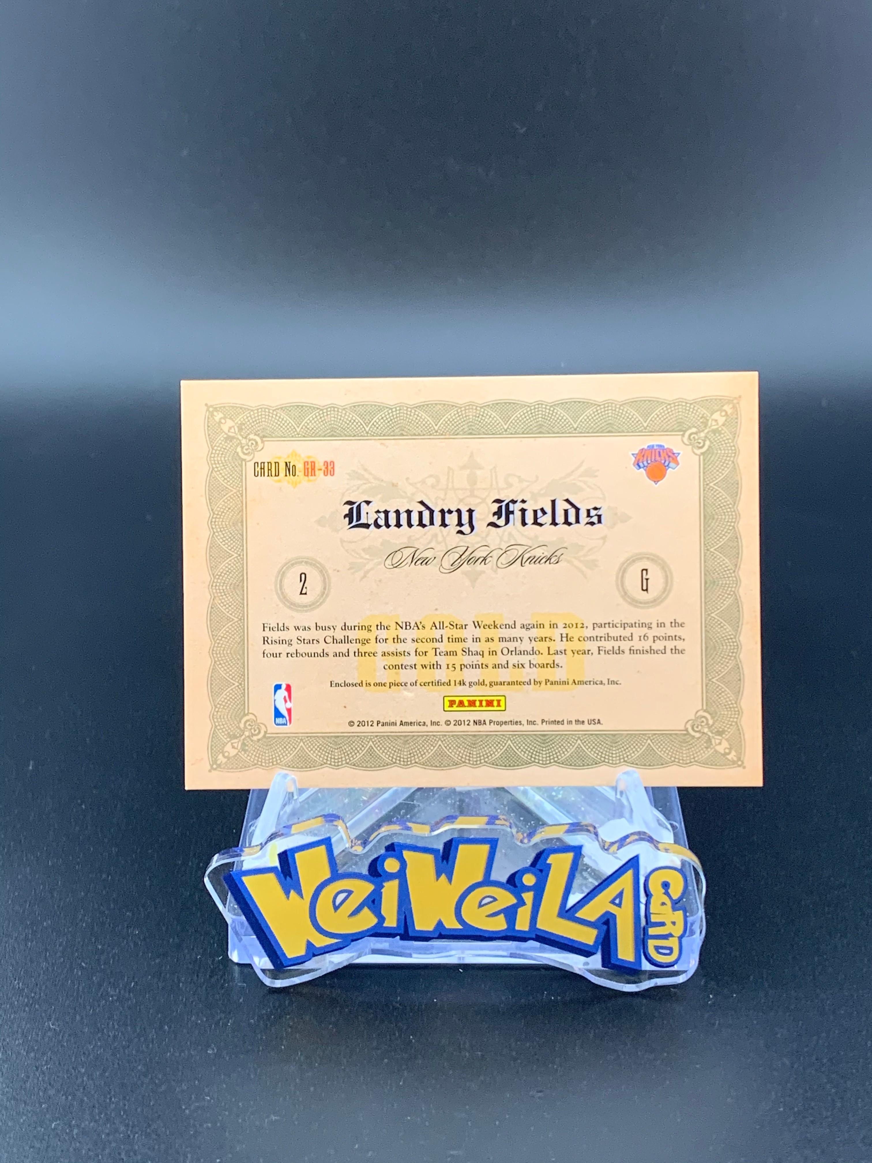 【微微辣代卖】A1-18爱心哥 2012 Panini Gold Standard Landry Fields 尼克斯 兰德里菲尔兹 金砖49编 14K黄金 金片 14k金片特卡,非常漂亮,金价飙