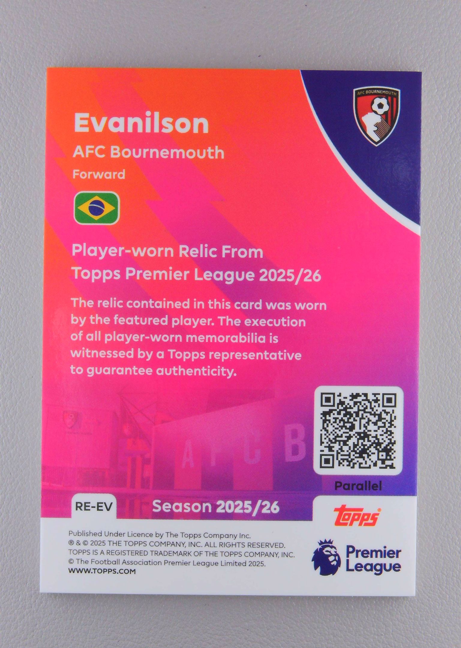 2025 Topps Premier League Evanilson 弗朗西斯科 埃瓦尼尔森 小窗 球衣 物料 伯恩茅斯 紫折 巴西 199编 英超 瑕疵 战神无双拍卡 (狗哥)