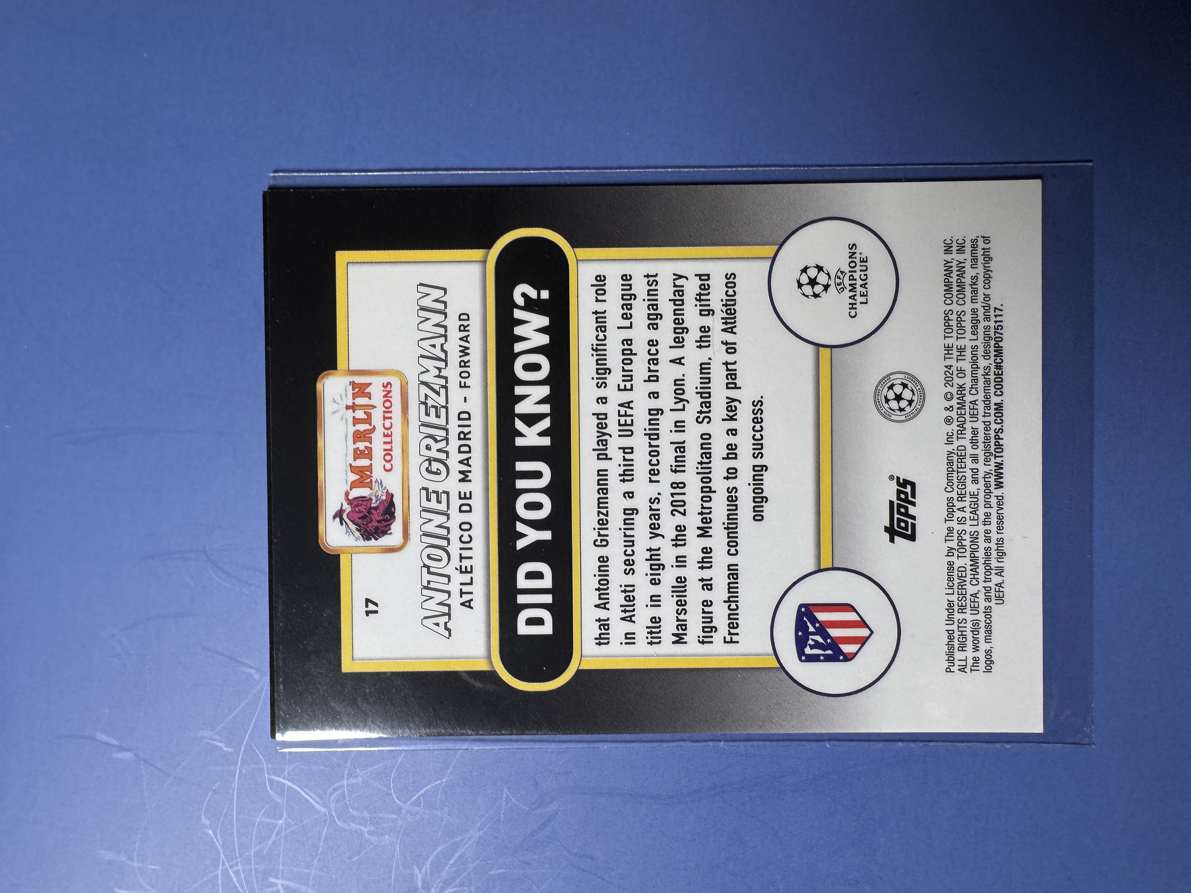 2023-24 Topps Merlin Antoine Griezmann 欧冠 梅林 马德里竞技 马竞 格里兹曼 格列兹曼 131/250编 银碎冰折 卡品如图