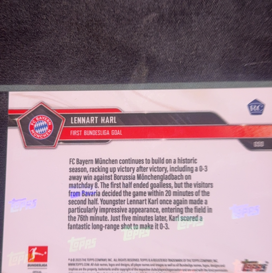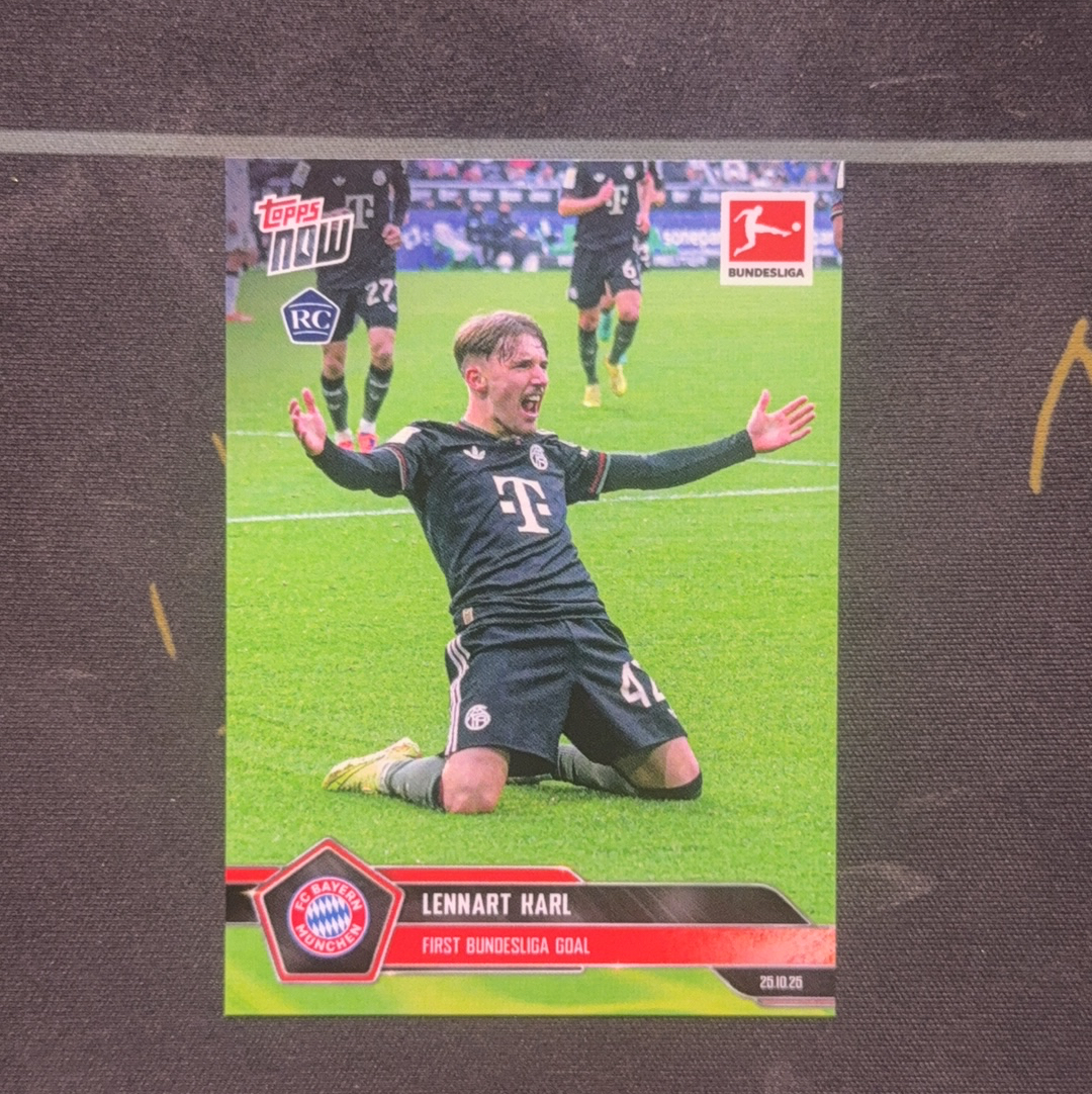 2025-26 Topps Now Lennart karl RC 伦纳特·卡尔 拜仁慕尼黑17岁小将打入个人德甲首粒进球时刻 base RC 新秀卡 德国 潜力无限 实卡精美 现货拍摄!
