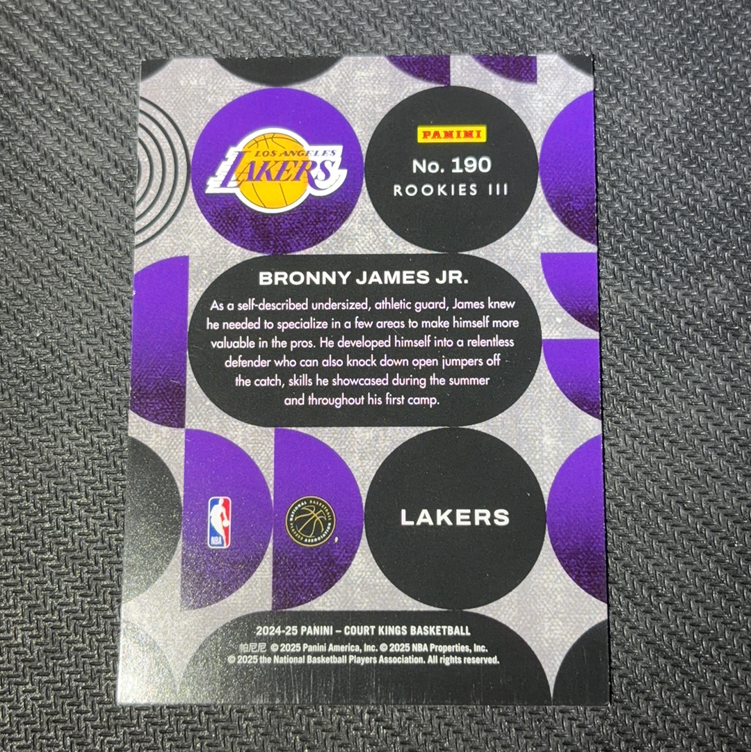 2024-25 Panini Court Kings Bronny James RC 湖人 布朗尼 詹姆斯 太子 新秀 油画系列 折射 银折 三级 base 特卡 实卡精美 未来可期 收藏必备 专收