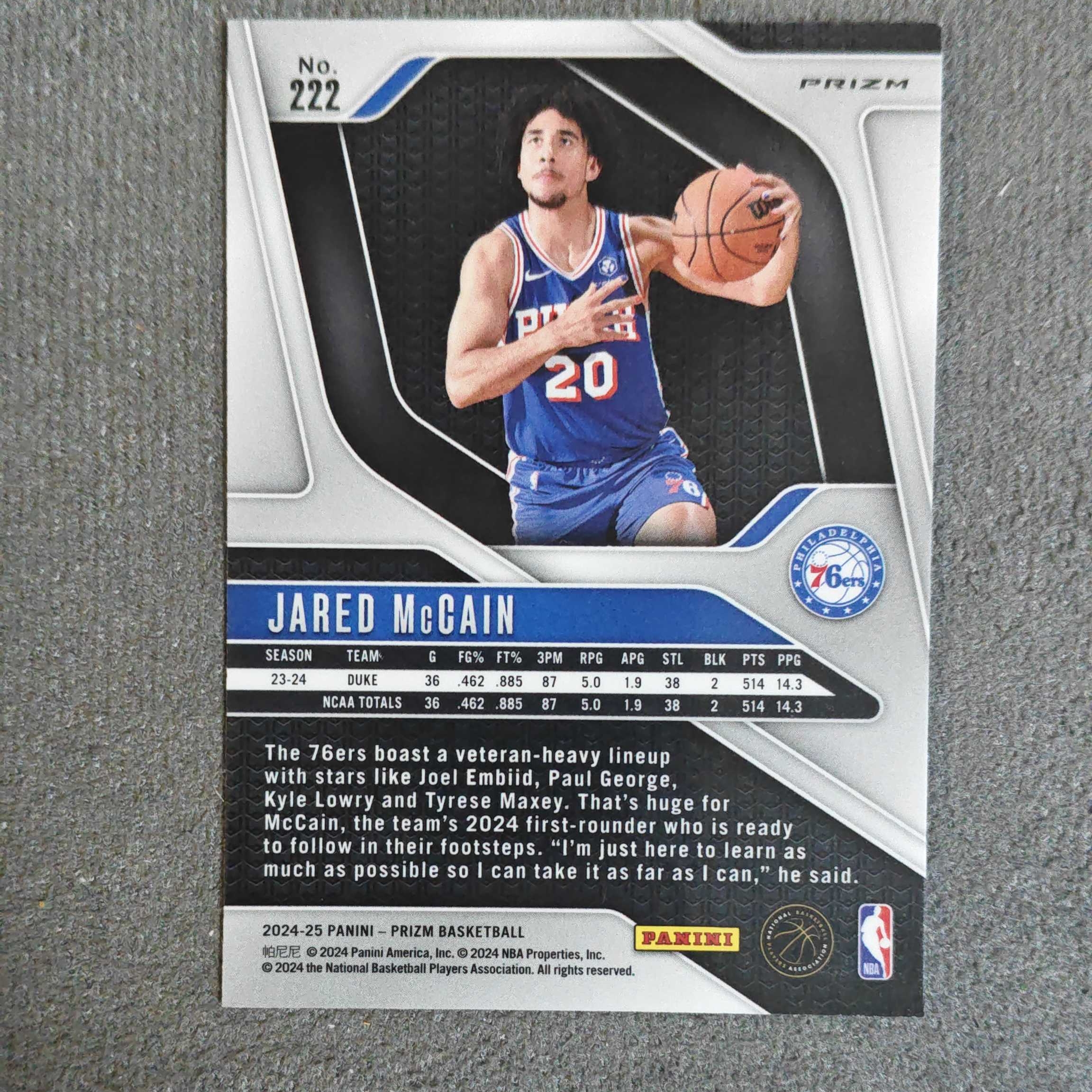 2024-25 Panini Prizm Jared McCain RC PZ系列 新秀RC 贾里德 麦凯恩 正银折射 76人 魔仙哥 未来可期 值得珍藏