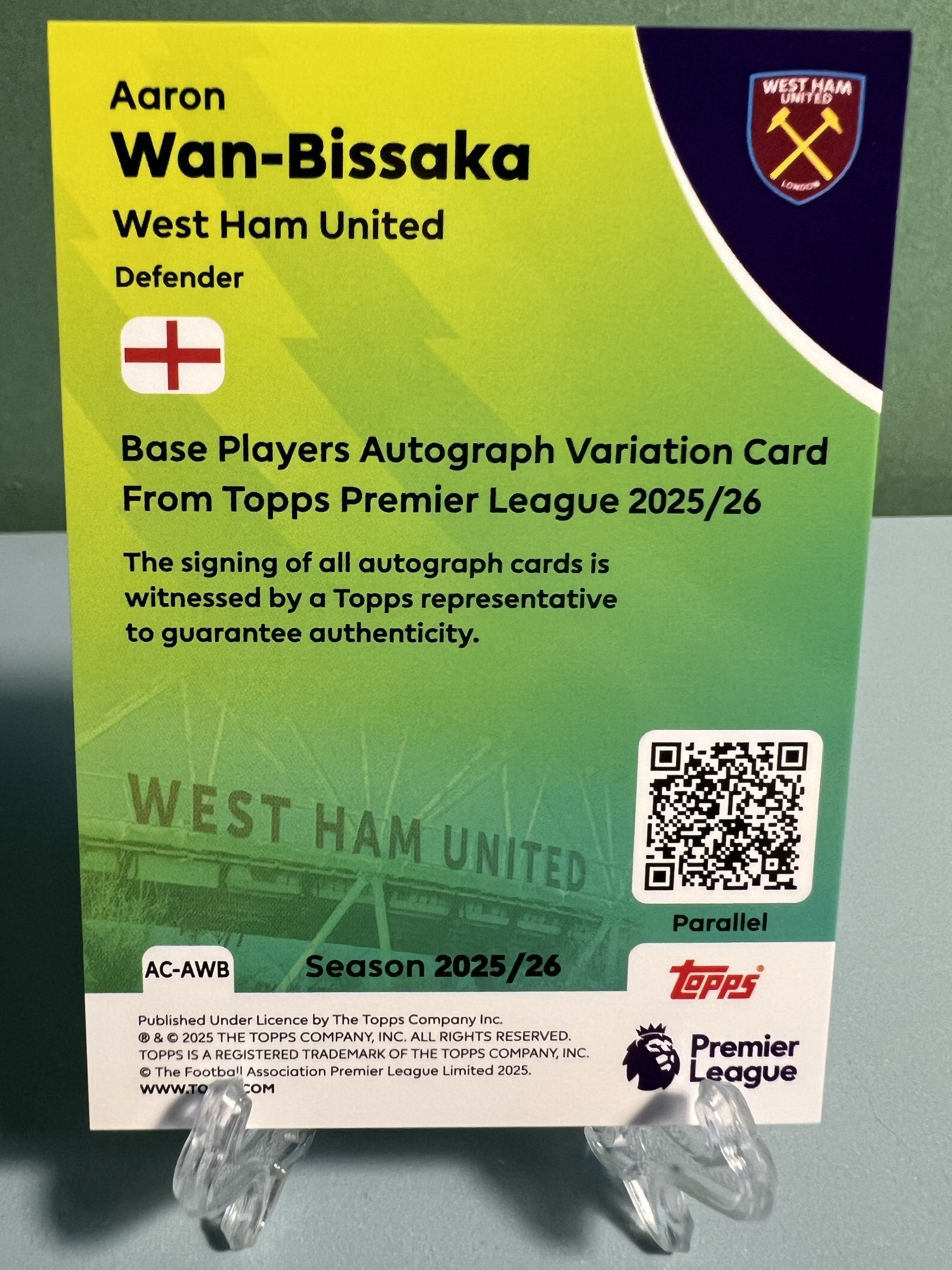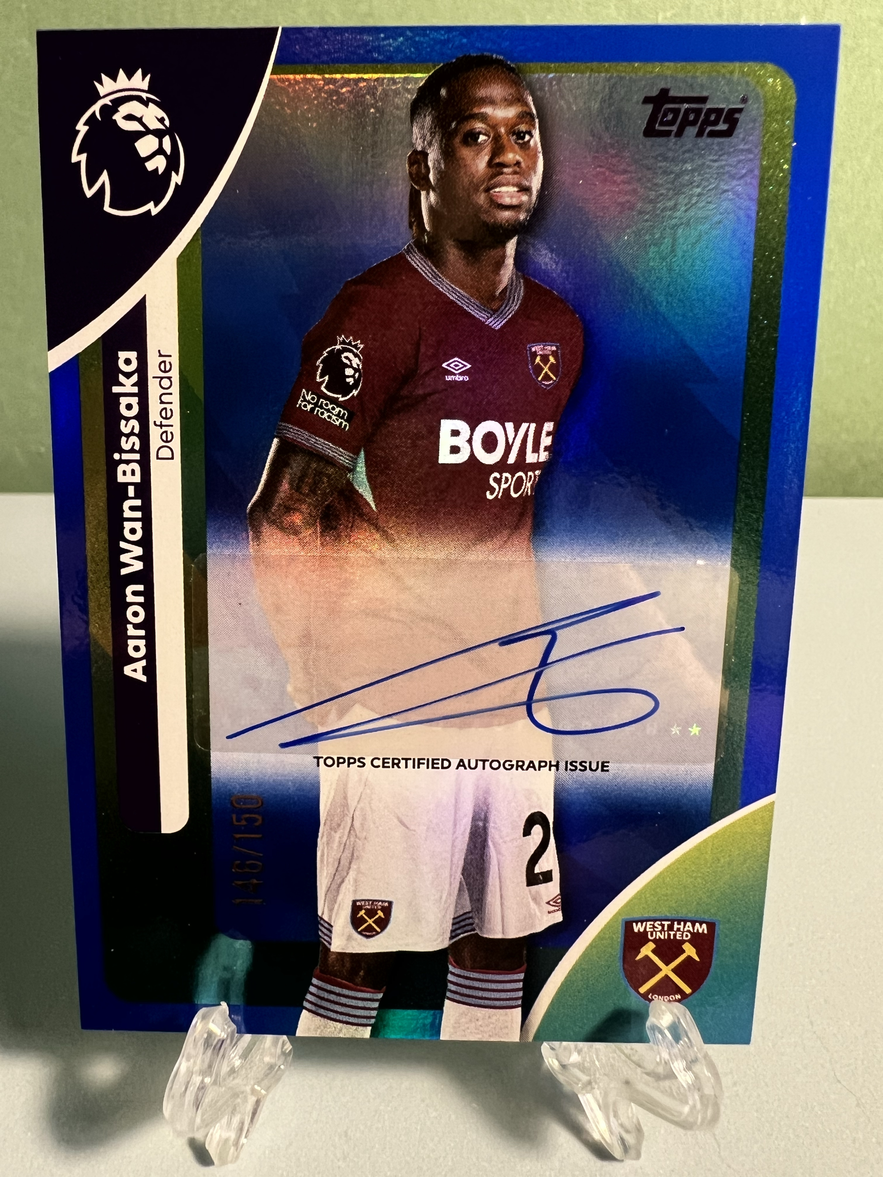 2025-26 Topps 英超Hobby Aaron Wan Bissaka 英超Hobby系列 万 比萨卡 蓝折 签字 150编 西汉姆联