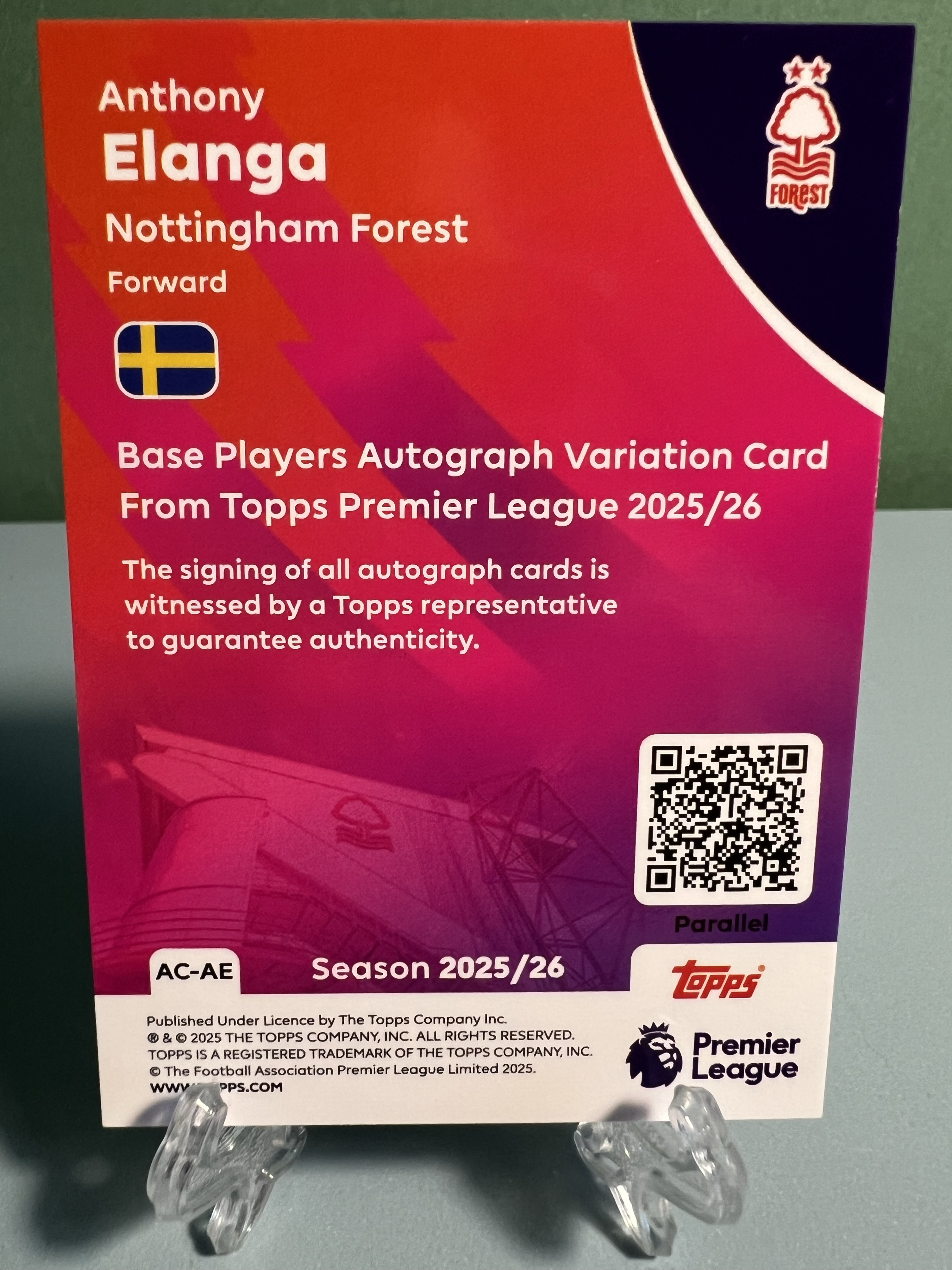 2025-26 Topps 英超Hobby Anthony Elanga 英超Hobby系列 安东尼 埃兰加 蓝折 签字 150编 纽卡斯尔联队 曼联 诺丁汉森林
