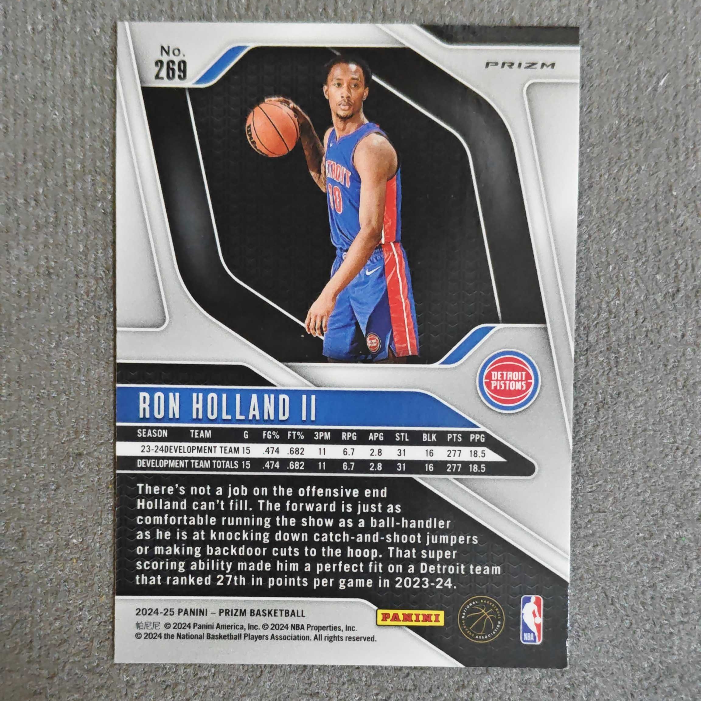 2024-25 Panini Prizm Ron Holland RC 罗恩 霍兰德 二世 活塞 新秀 Pz系列 Base 折射 正银折