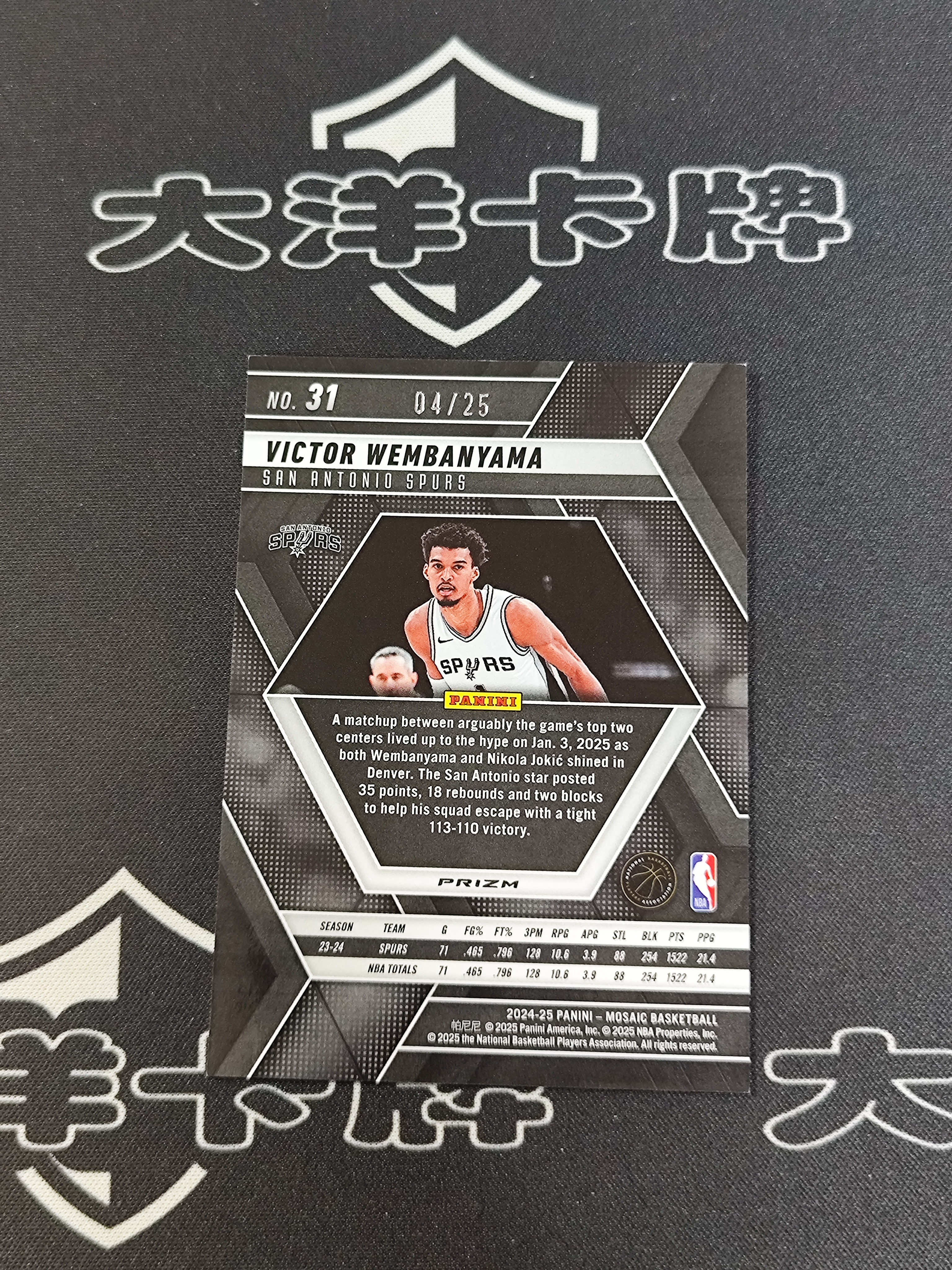 2024-25 Panini Mosaic Victor Wembanyama RC 【大洋代卖】马赛克 维克托文班亚马 白折限量25张 箱货 折射 马刺 状元 不累计实体店免费代卖手续费全网最低 琳琳