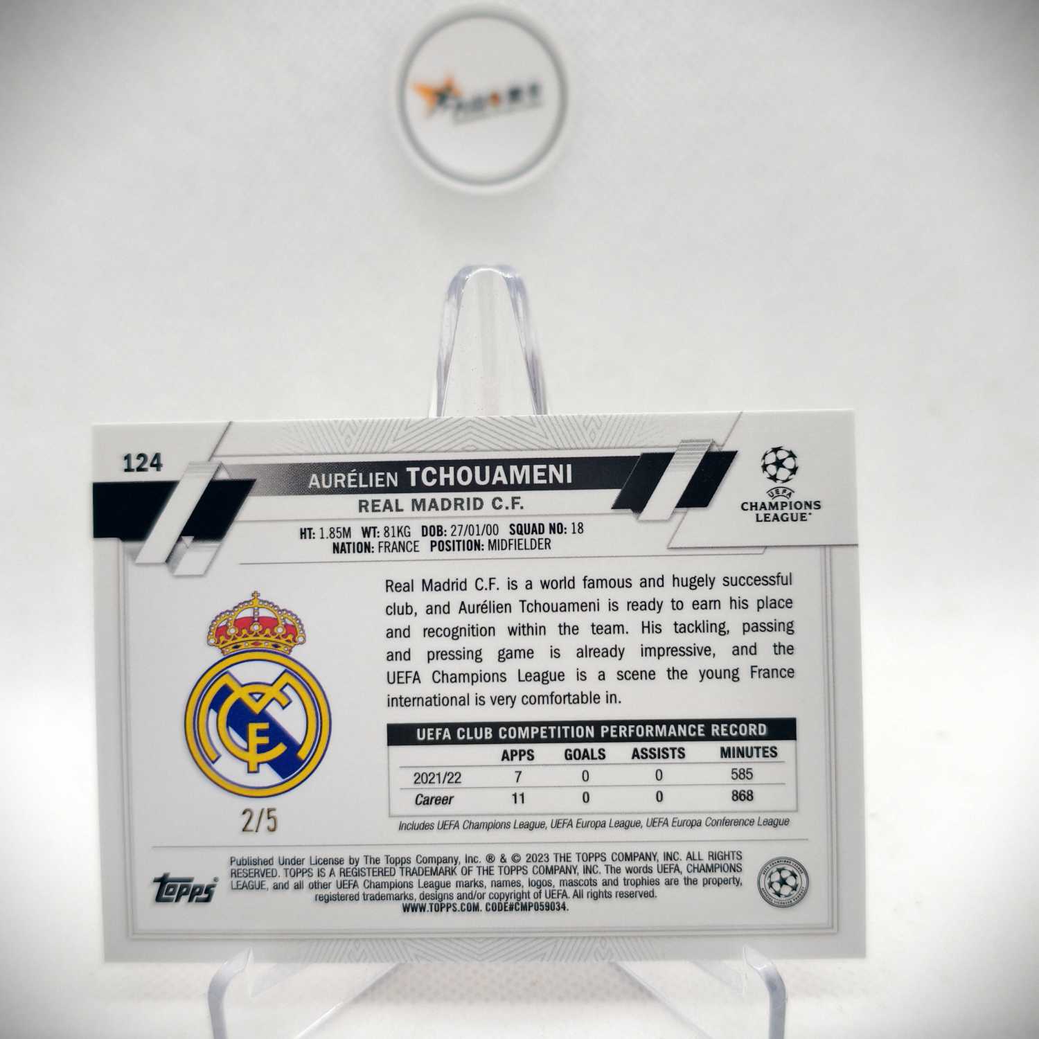 2023 Topps ucc Aurélien Tchouameni 皇家马德里 楚阿梅尼 2/5 正红折 法国 卡品完好【大山球星卡】不累计
