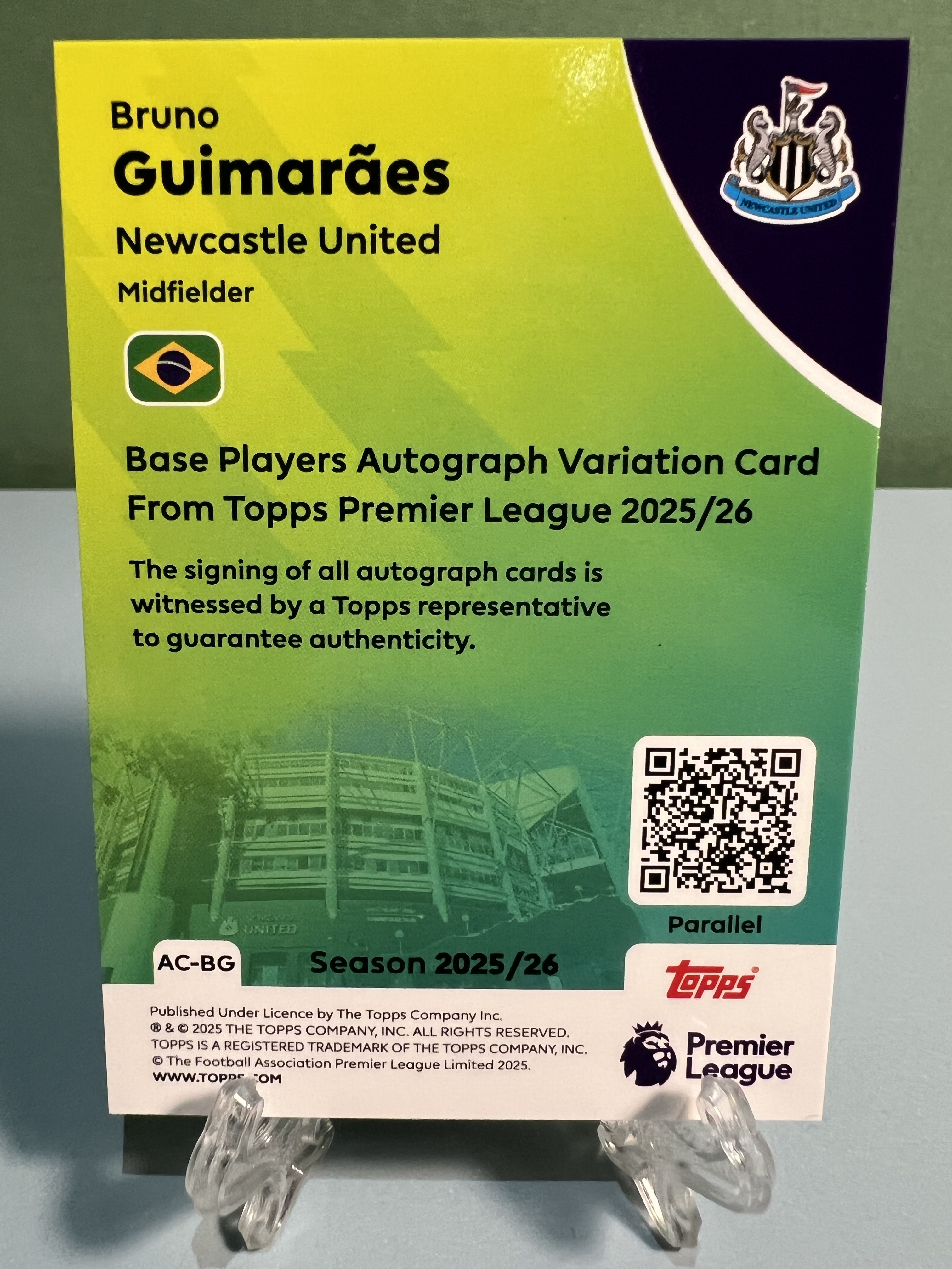 2025-26 Topps 英超Hobby Bruno Guimaraes 英超Hobby系列 布鲁诺 吉马良斯 签字 75编 纽卡斯尔联队