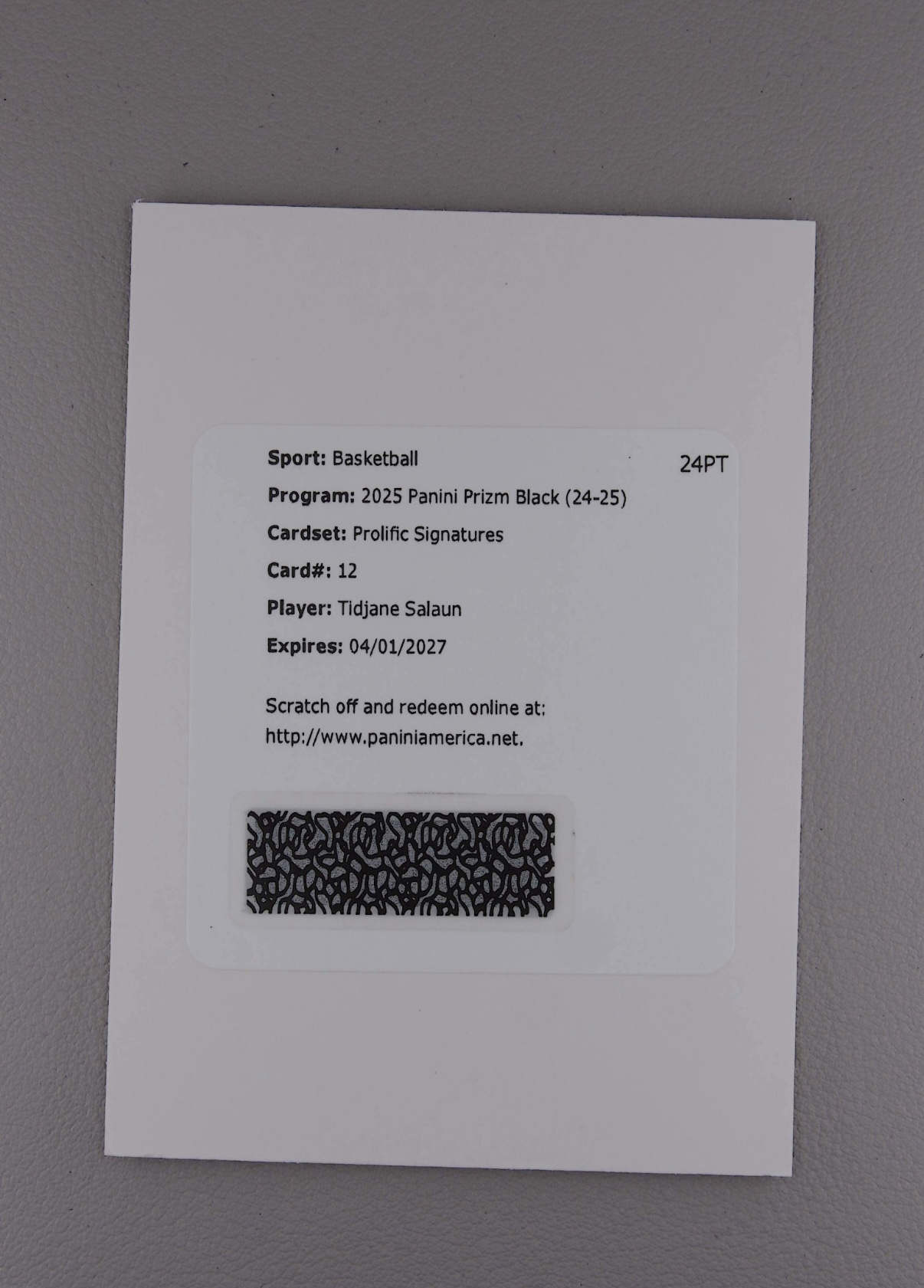 2024-25 Panini Prizm Tidjane Salaun 交换板 PZ Black 黄蜂 新秀 提贾尼 萨隆 Prolific签字 卡品如图