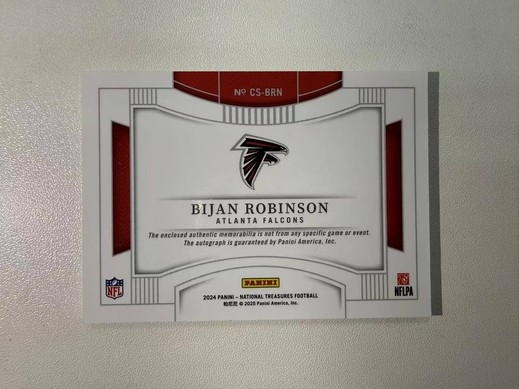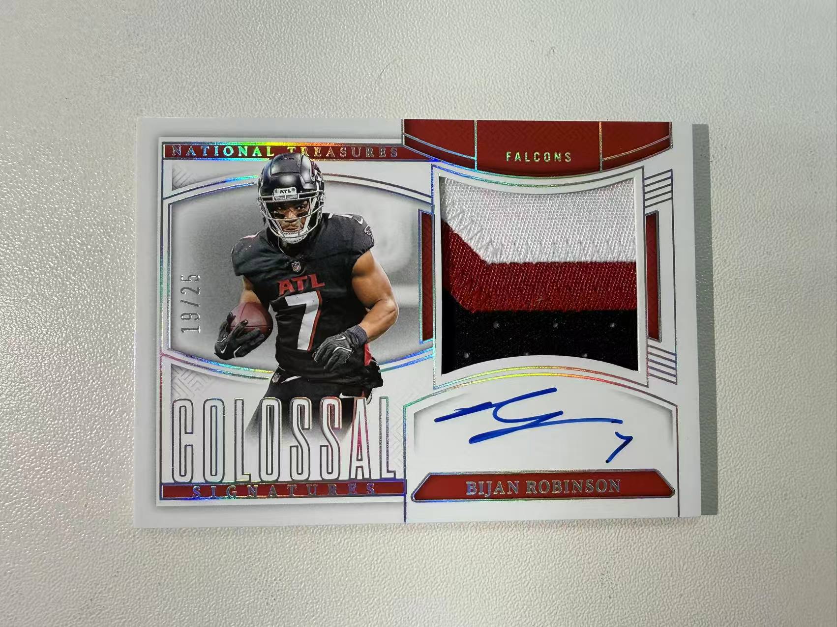 2024 Panini National Treasures 橄榄球国宝 比詹 罗宾逊 Bijan Robinson 19/25编 三色暴力patch物料切割 签字 auto 卡签 猎鹰 卡品如图