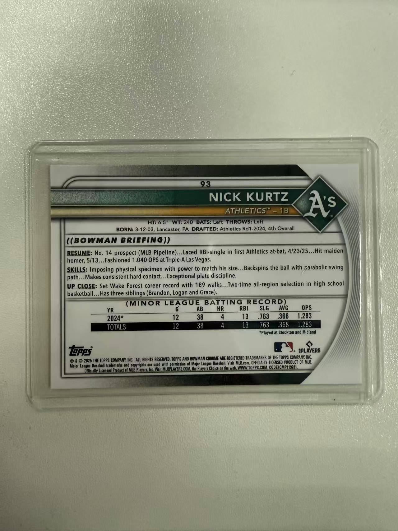 2025 topps bowman mlb 棒球 nick kurtz 尼克 科兹 红标 rc新秀 topps官方最佳新秀回购 100刀