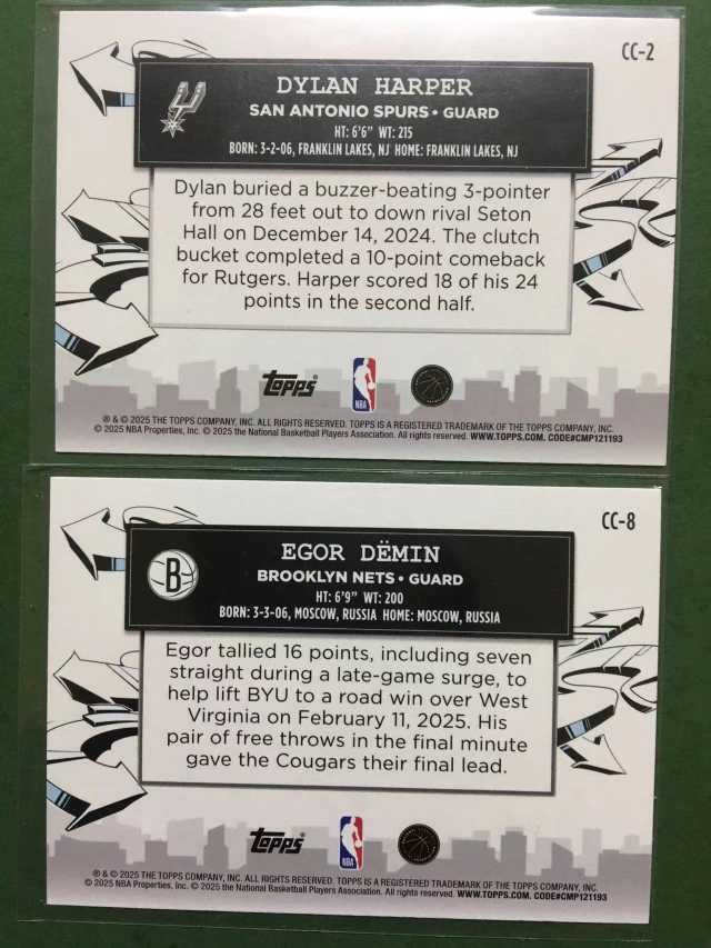 2025 Topps Flagship Dylan Harper RC 新秀 马刺 迪伦 哈珀 篮网 杰敏 杰明 CLUTCH CITY 城市地标特卡 2张lot 弗拉格同届 凑套必备 不保卡品#纪