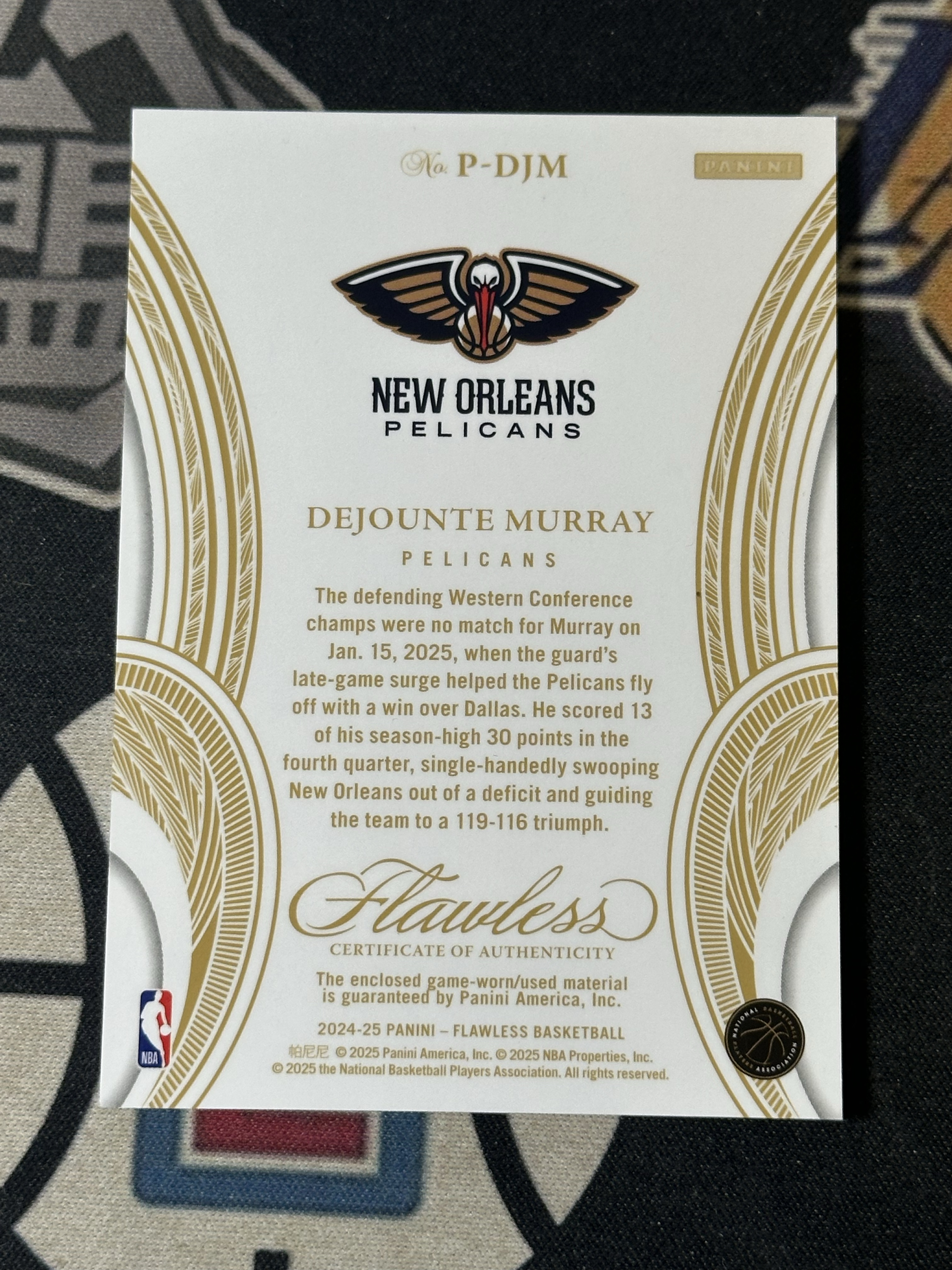 【预付85%卡迷联盟-入眼】2024-25 Panini Flawless Dejounte Murray 手提 大窗 球衣Patch 鹈鹕 德章泰 穆雷 默里 12/25