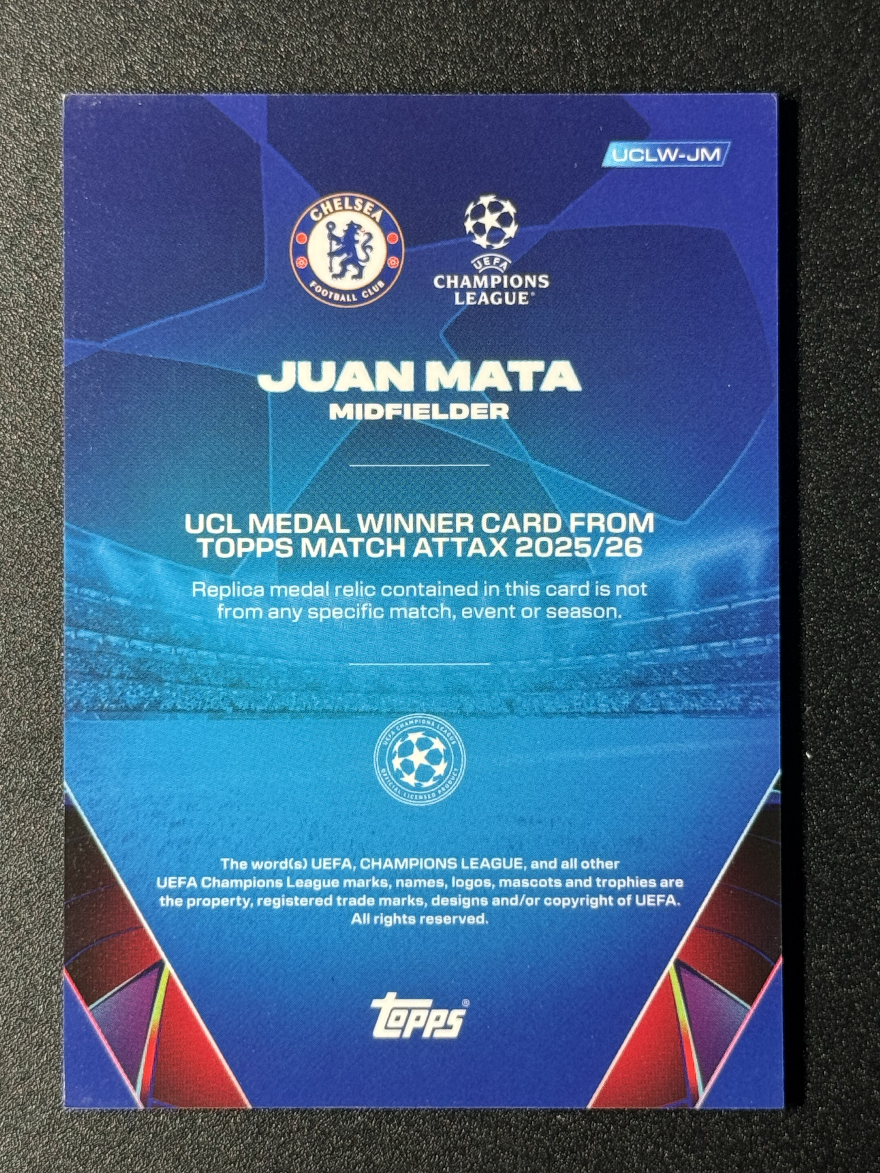 【读秒绝杀】2025-26 Topps Match Attax 欧战游戏版 UCL Medal Winner 欧冠奖牌卡 实物卡 金块 Juan Mata 胡安 马塔 切尔西 李总