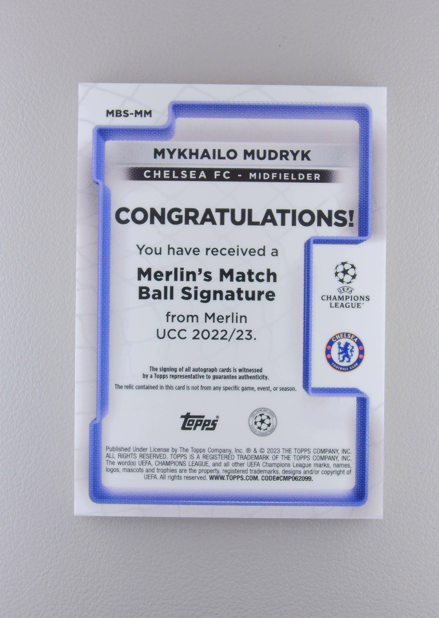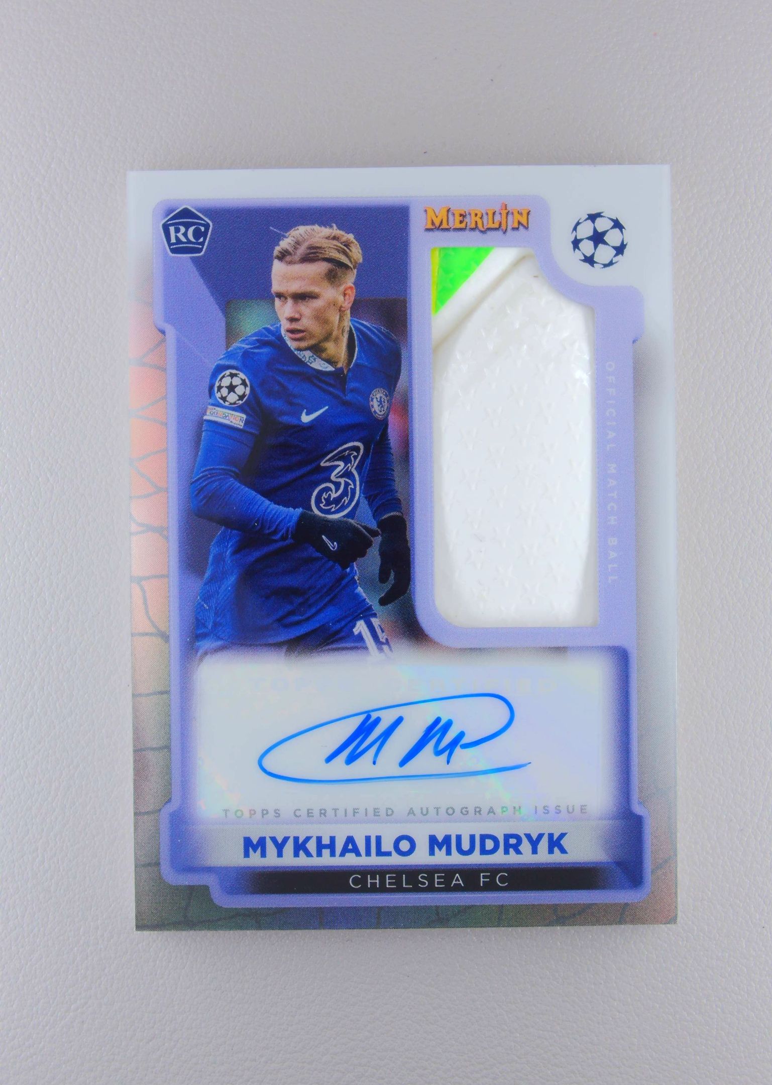 2023 Topps Merlin Mykhailo Mudryk 米哈伊洛 穆德里克 签字 大窗 球皮 物料 新秀 RC 切尔西 梅林 瑕疵 战神无双拍卡 (#xuan)