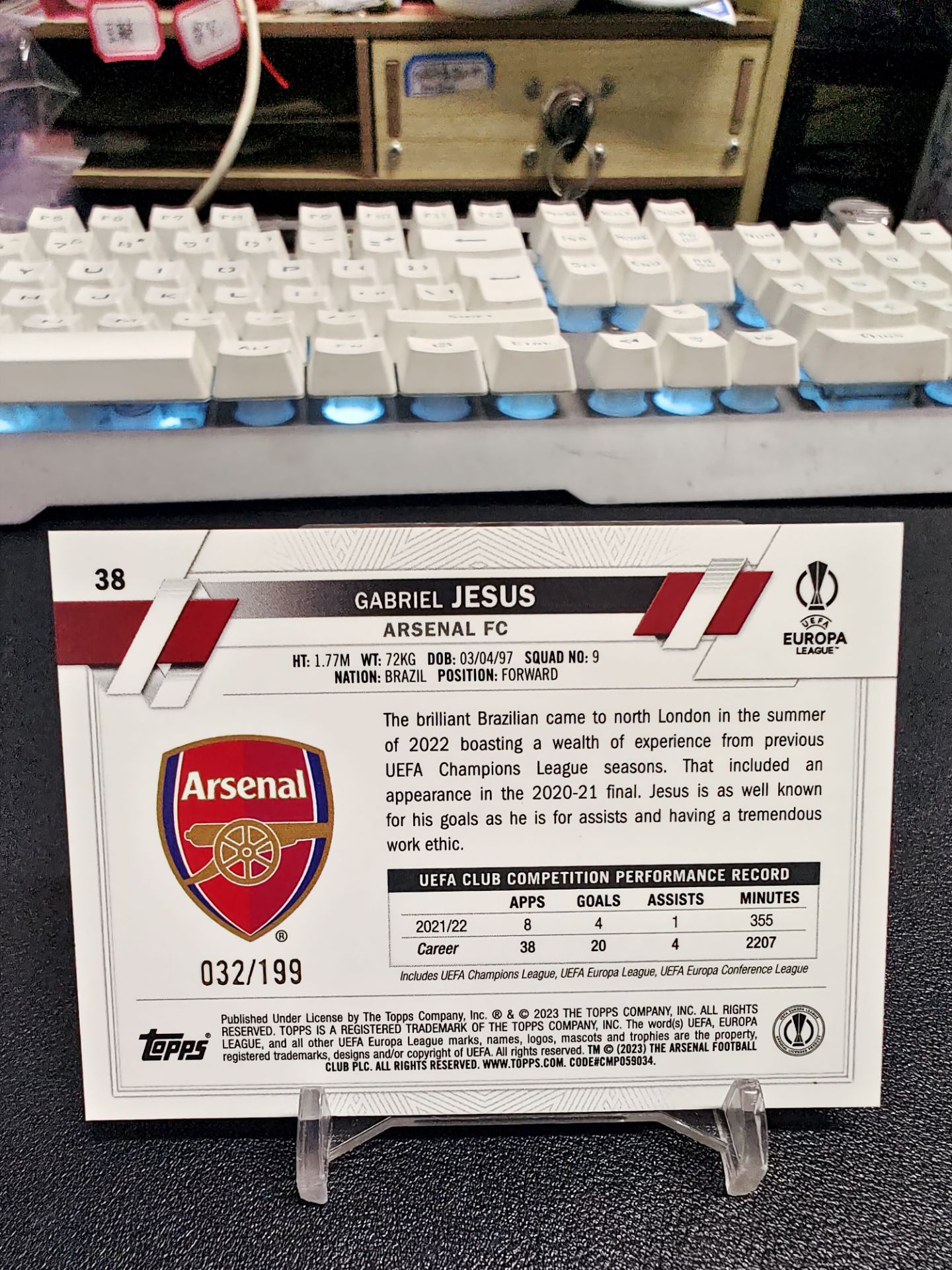 【浩行拍卖 截标预付82%】2023 topps Gabriel Jesus 阿森纳 加布里埃尔 热苏斯 绿折 折射 32/199编 专收必备 瑕疵看图「小流浪112」1118E03恁