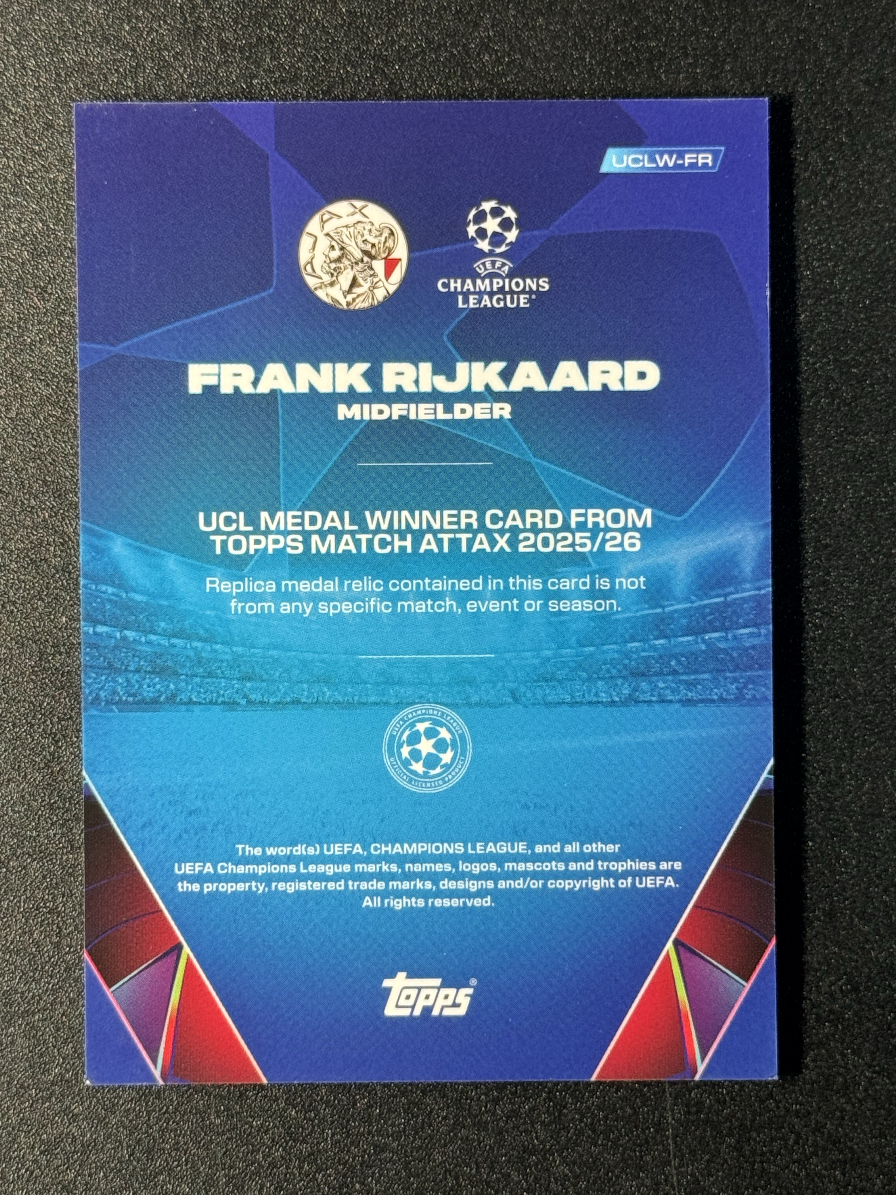 【读秒绝杀】2025-26 Topps Match Attax 欧战游戏版 UCL Medal Winner 欧冠奖牌卡 实物卡 金块 Frank Rijkaard 里卡尔德 荷兰三剑客 李总 #1