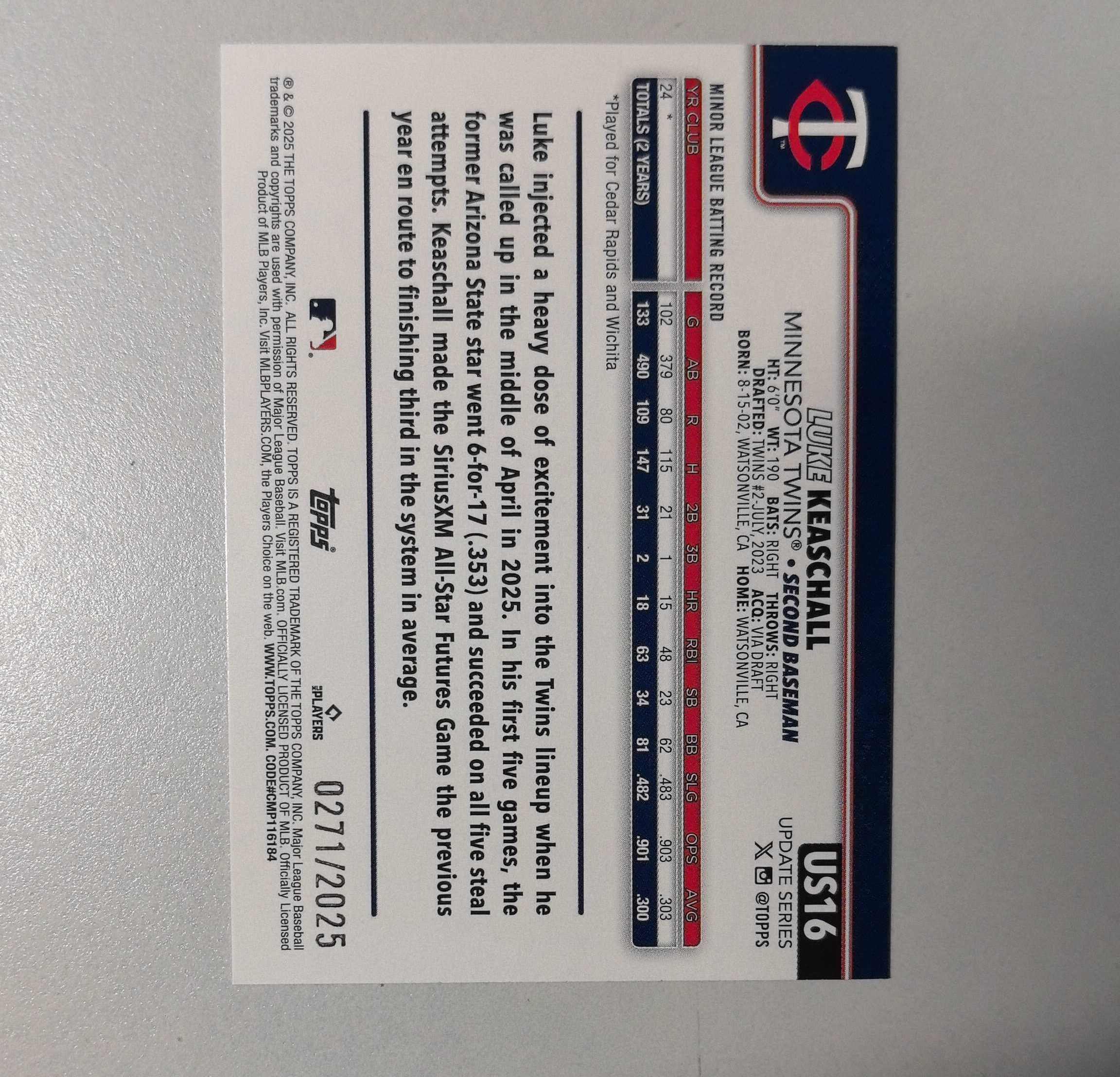2025 Topps 【锡安代卖】 累计照常 棒球mlb series update 铜平行2025编 明尼苏达双城 热门新秀 luke keaschall 卡品如图 三角肉