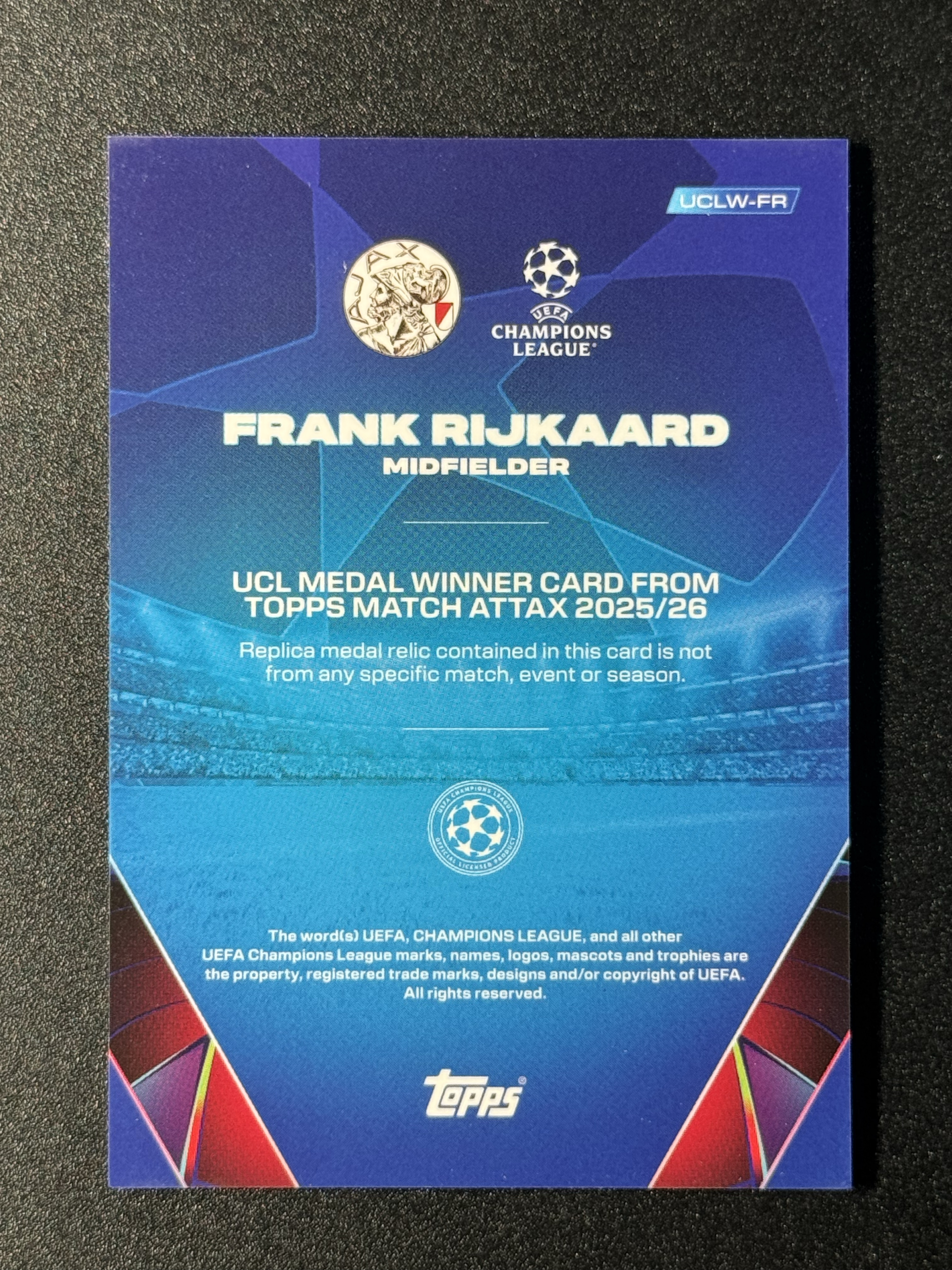 【读秒绝杀】2025-26 Topps Match Attax 欧战游戏版 UCL Medal Winner 欧冠奖牌卡 实物卡 金块 Frank Rijkaard 里卡尔德 荷兰三剑客 李总 #2