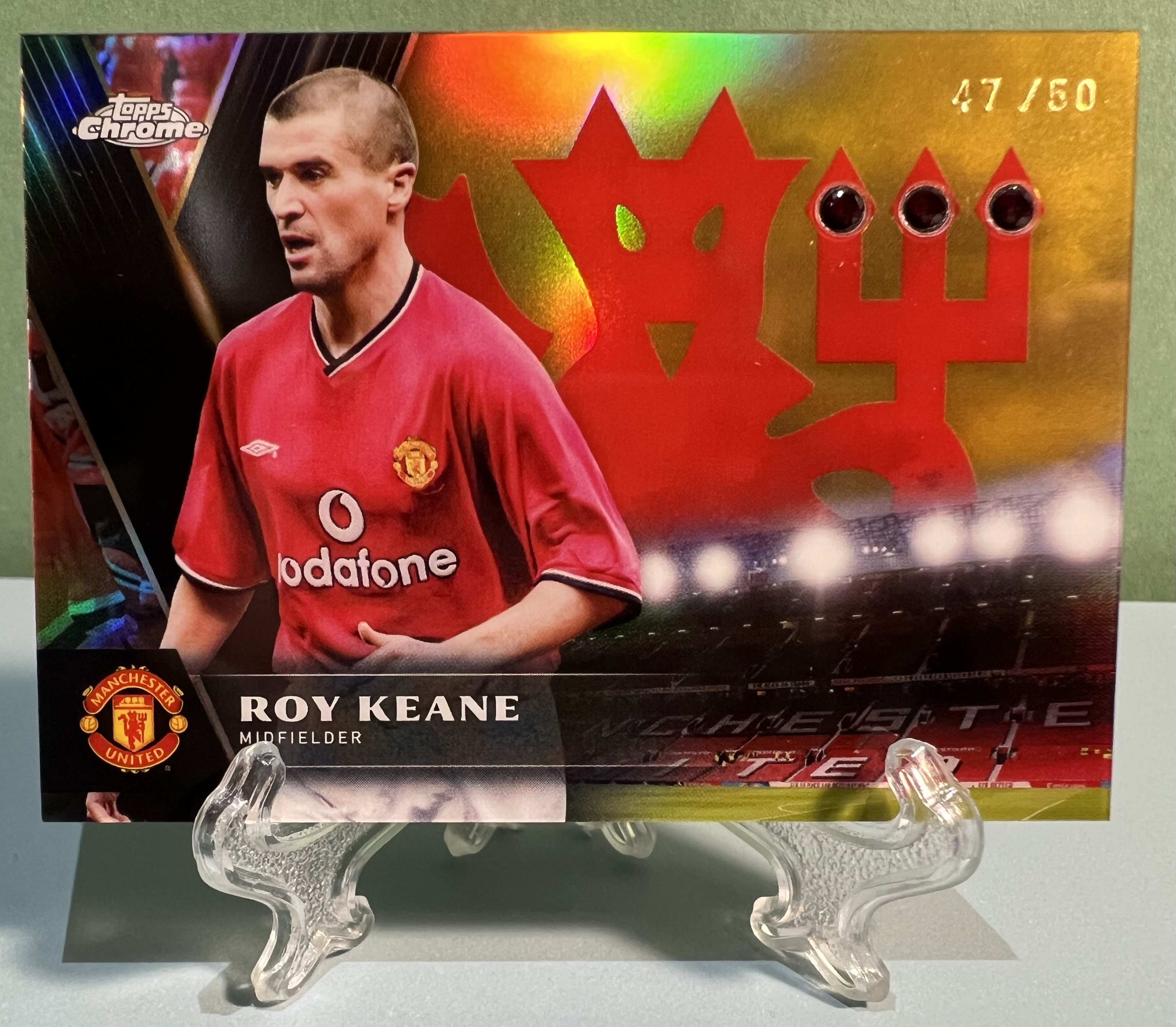 2024-25 Topps Chrome Roy Keane 红魔高端队盒 罗伊 基恩 Red Devils 50编 金折 钻石实物镶嵌 红魔Logo 曼联