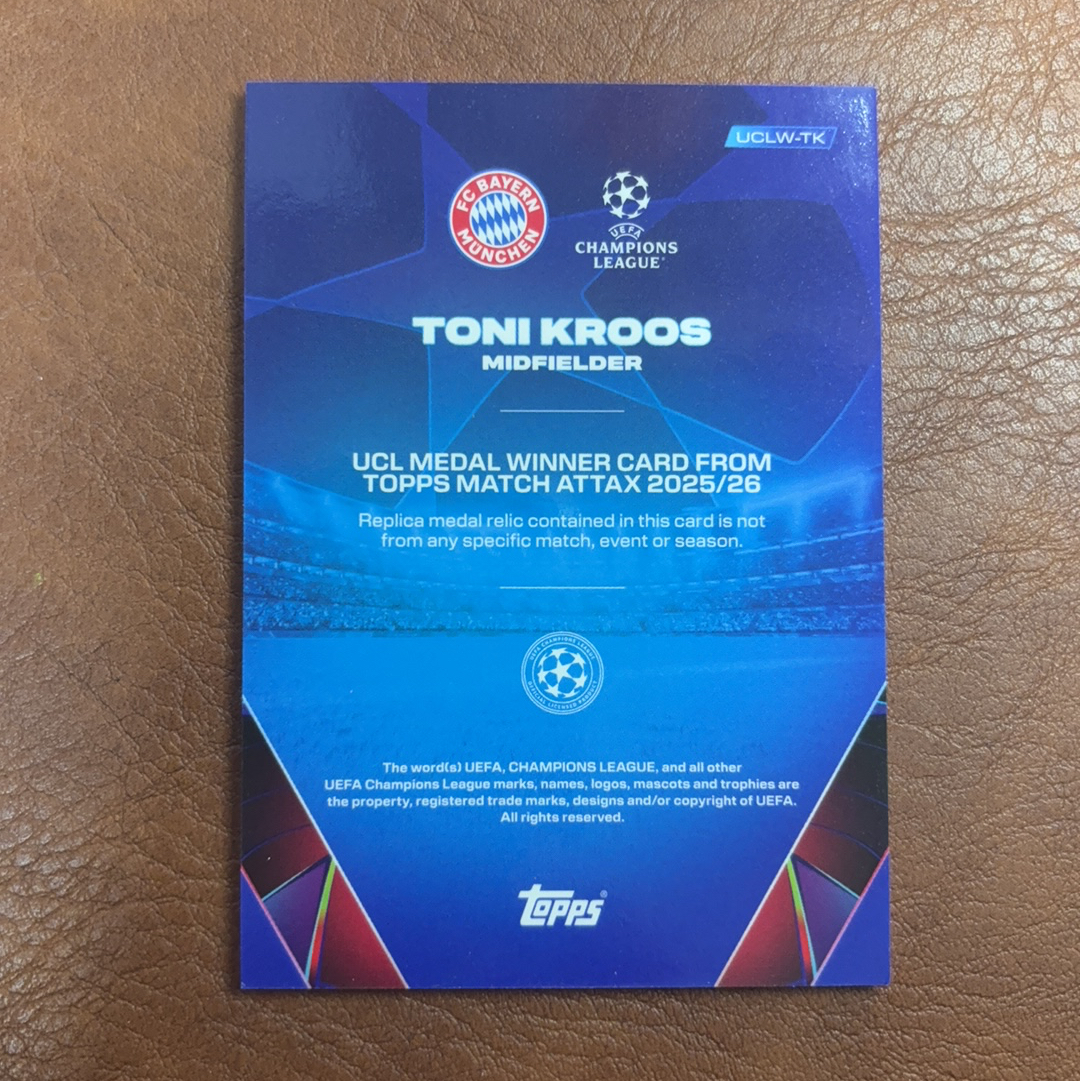 2025-26 Topps Match Attax 游戏版 Toni Kroos 【耳朵拍卖】拜仁 德国 托尼 克罗斯 A张 大比例 欧战 12/13奖牌卡 金属/金币特卡 收藏必入 瑕疵见图 爆罗
