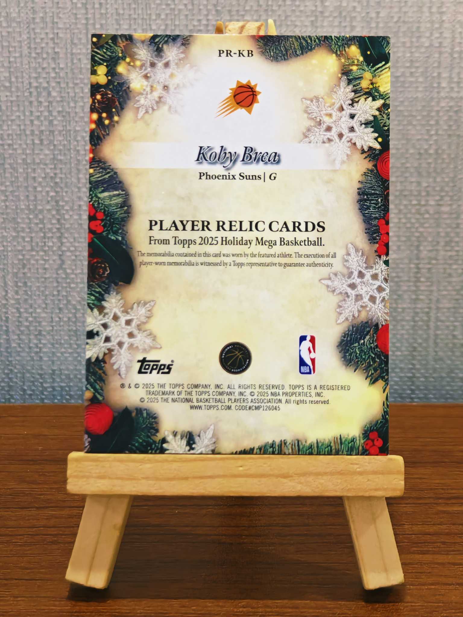 2025-26 Topps Holiday Koby Brea RC 科比 布雷亚 太阳 新秀 假日 圣诞节 小窗 球衣 物料 亲穿 稀有 专收必备 #PR-KB【小张】